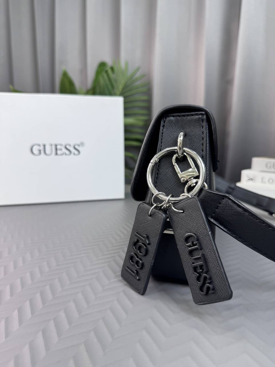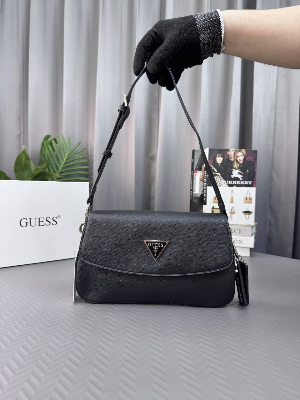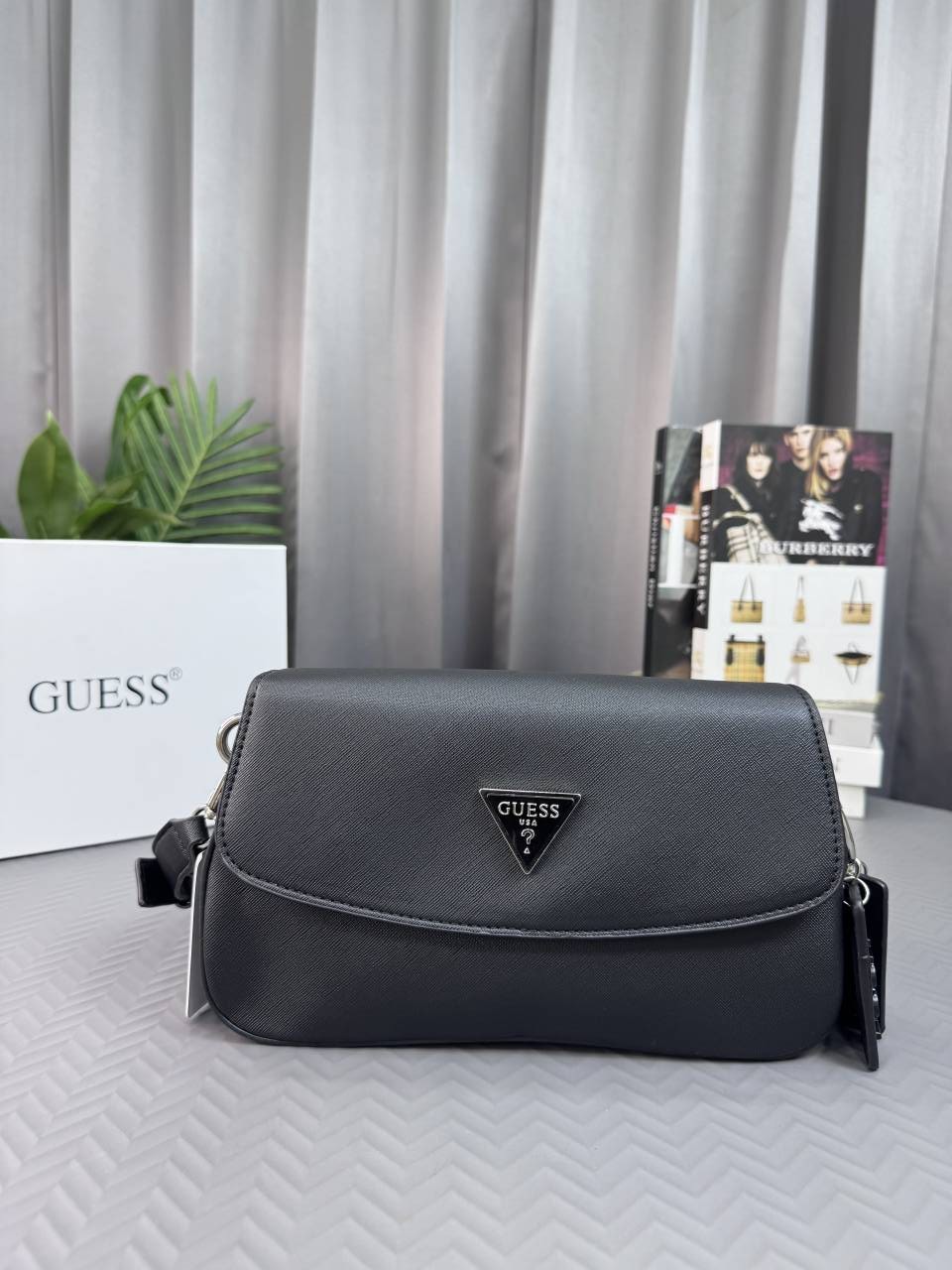 GUESS MONOGRAM BLACK HAND BAG WITH BRAND BOX - G21