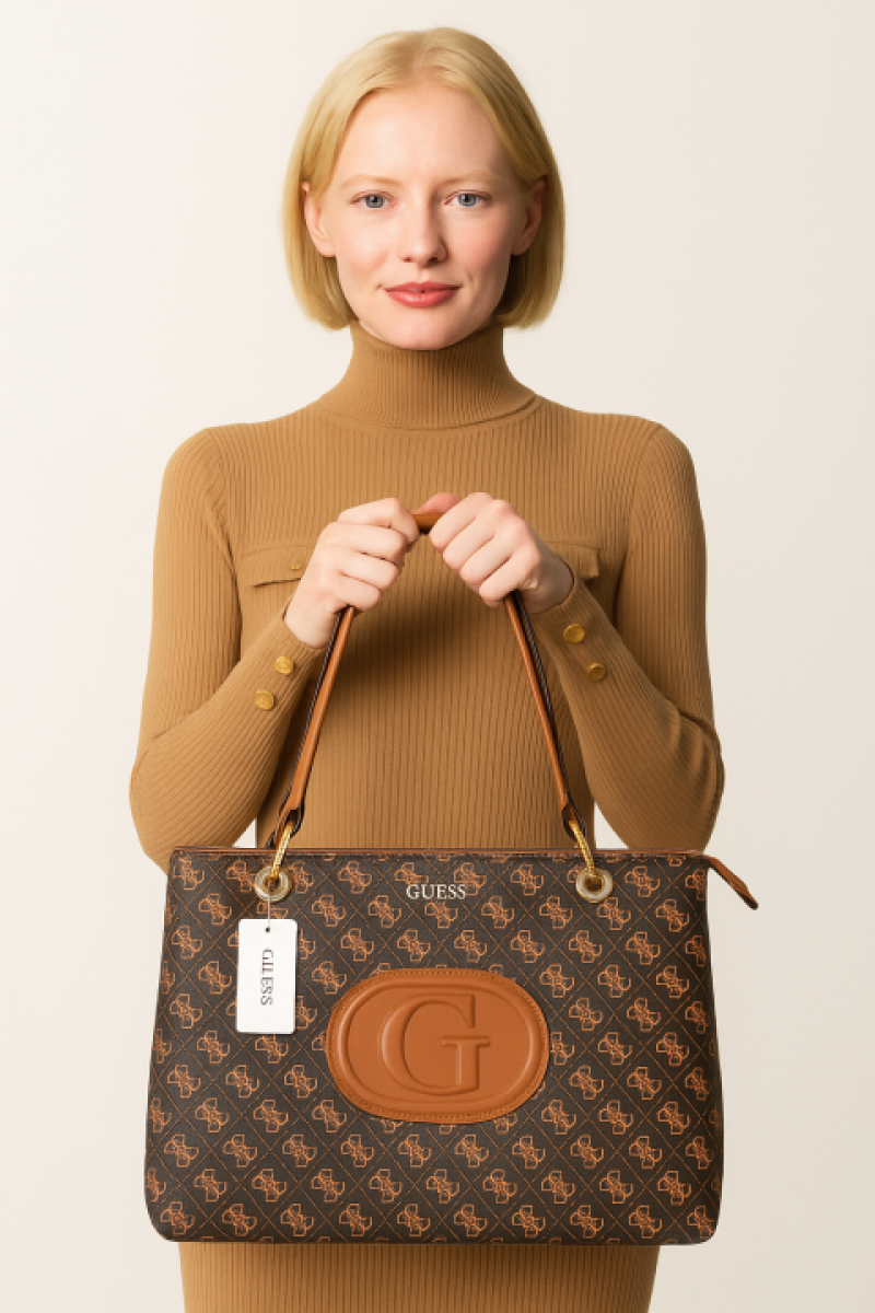 GUESS QUATTRO G LUXURY SATHCHEL HANDBAG WITH OG BOX AND DUST BAG PREMIUM QUALITY (BLACK)