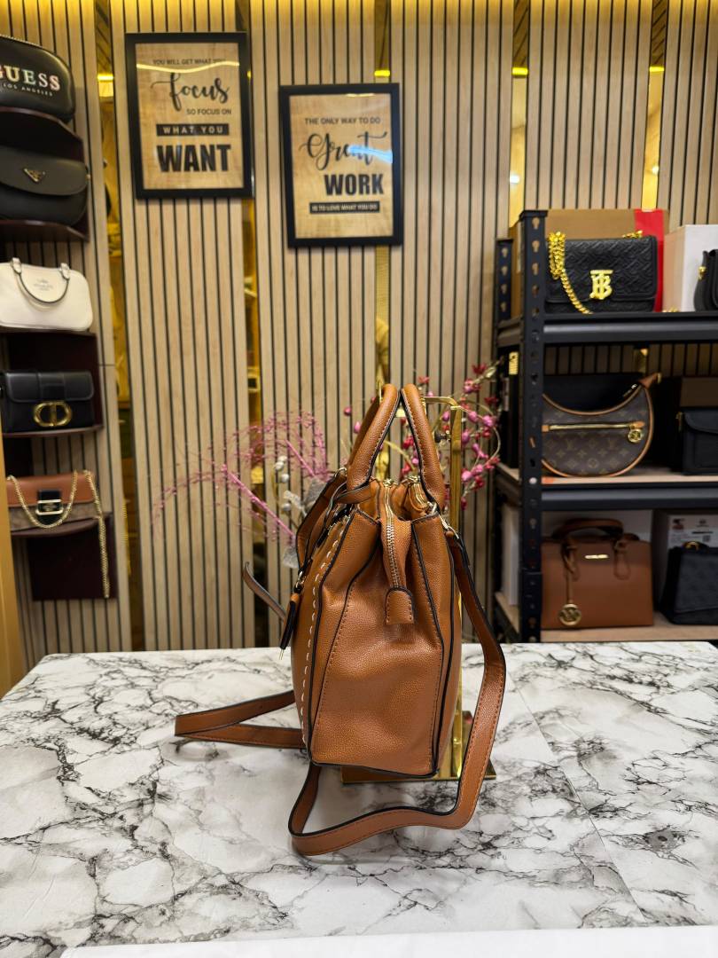 Guess Noelle Luxury Satchel Handbag With Dust Bag (Brown)