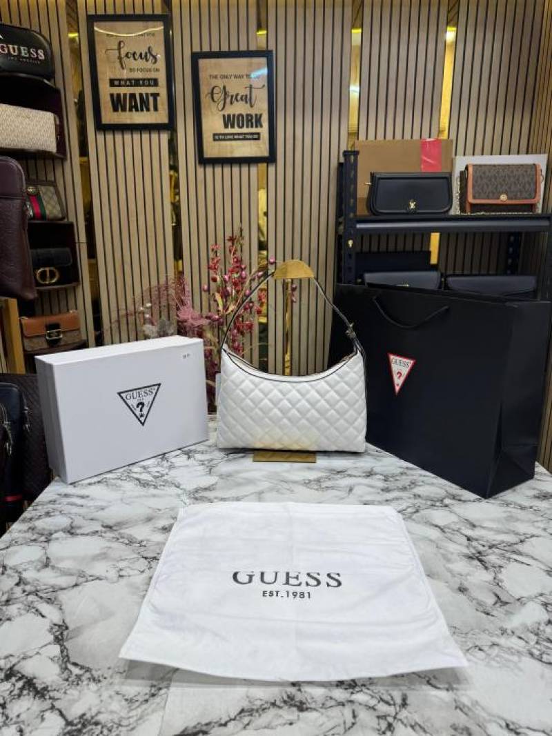 Guess Rianee Shoulder Bag With Box And Dust Bag Including Carry Bag (White)