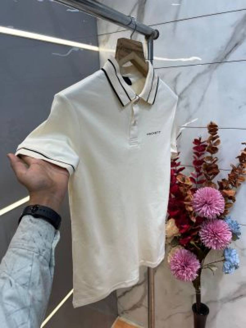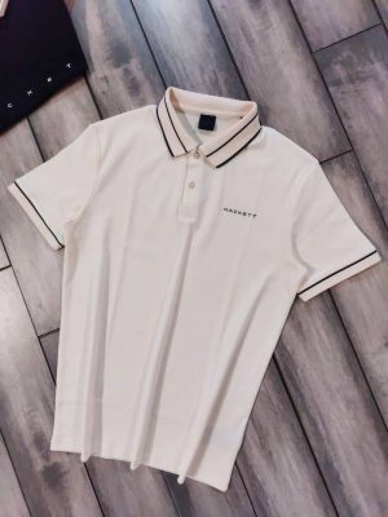 Hacket Beige Premium Imported Compact Yarn 240 GSM Interlock Fabric Polo Tshirt with Collar Design and Emboss Logo 3912