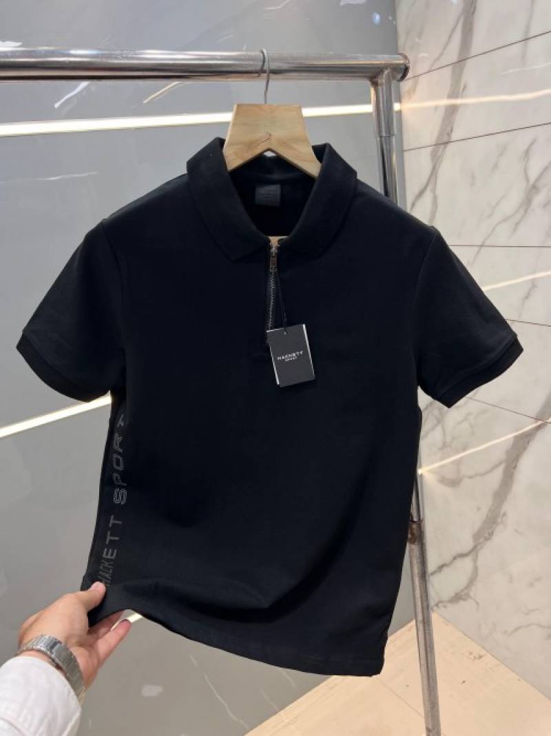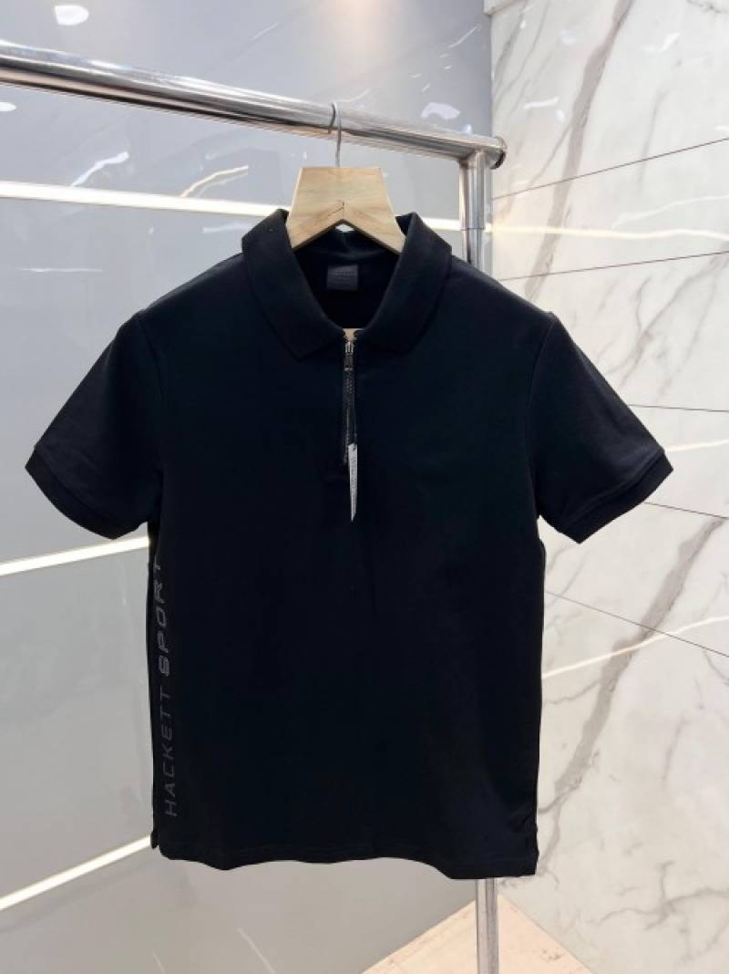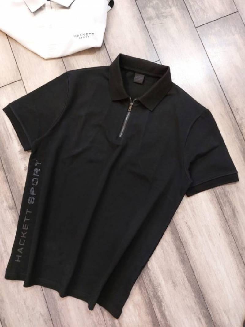 Hacket t Black Premium Polo Tshirt With 240 gsm interlock cotton lycra fabric and Side Design with Zip Style 2724