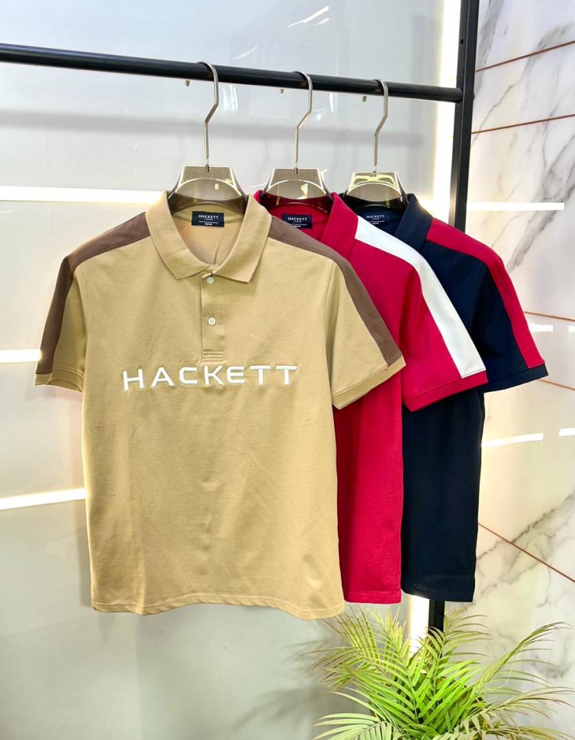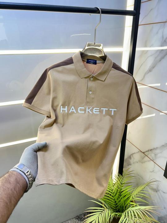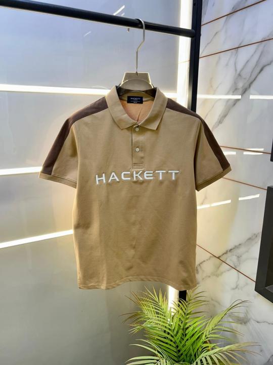 Hacket t London Beige Embroidery Print Collar Neck Premium Polo T-shirt F2794-BE