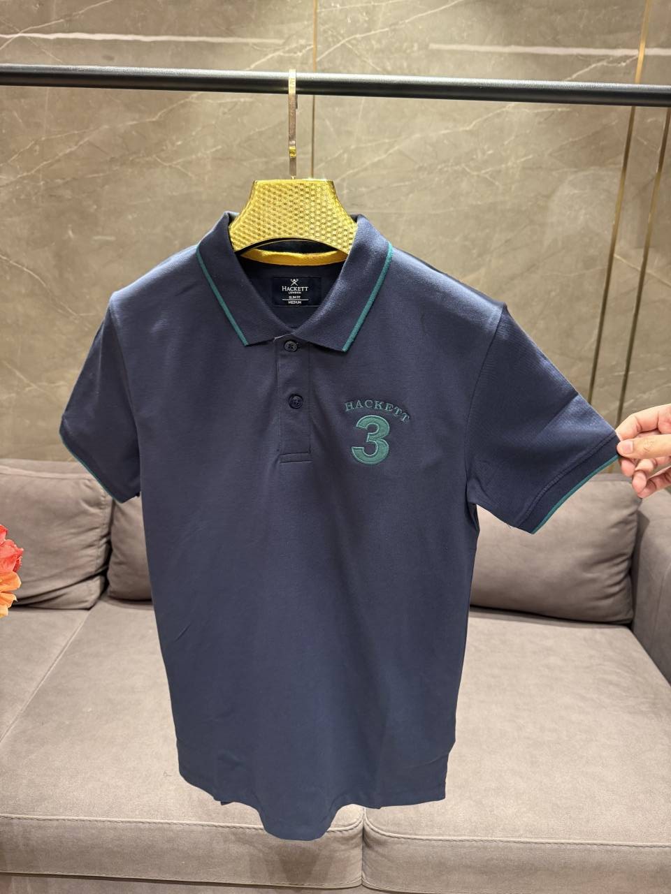 Lacost e Navy Polo Premium Collar Neck T-shirt F2974-NY