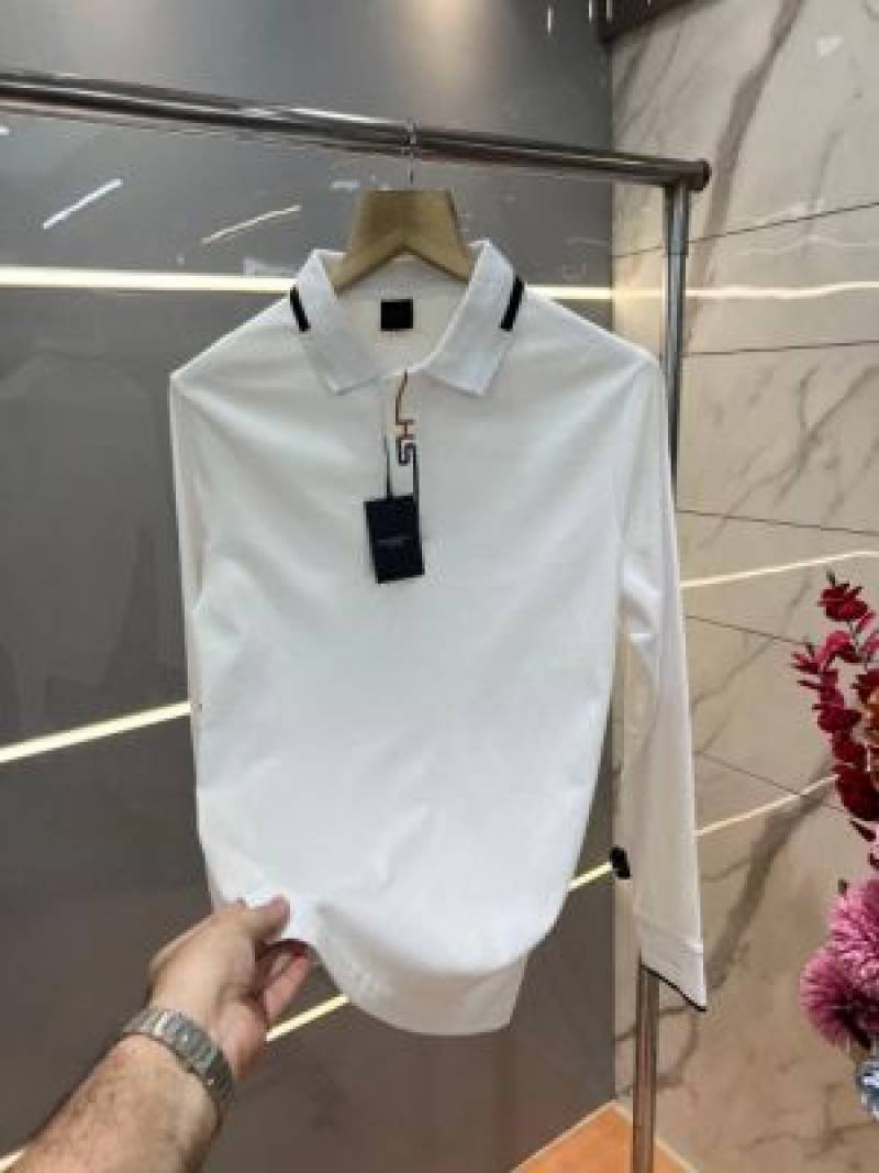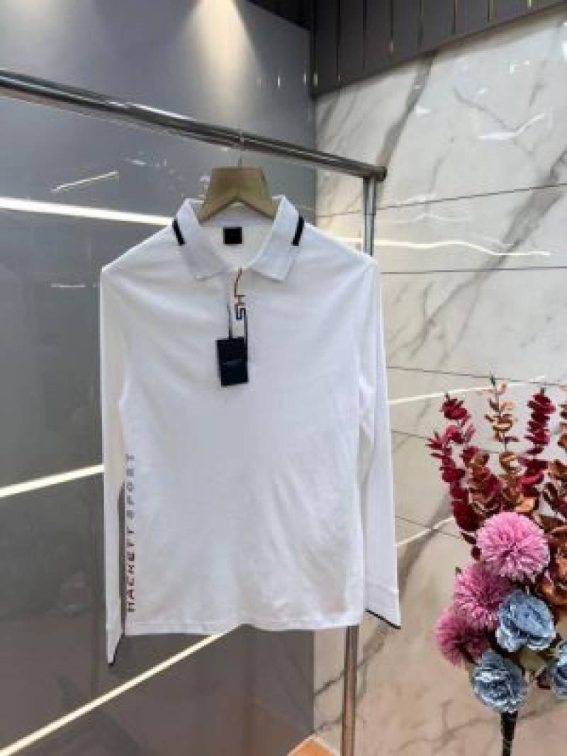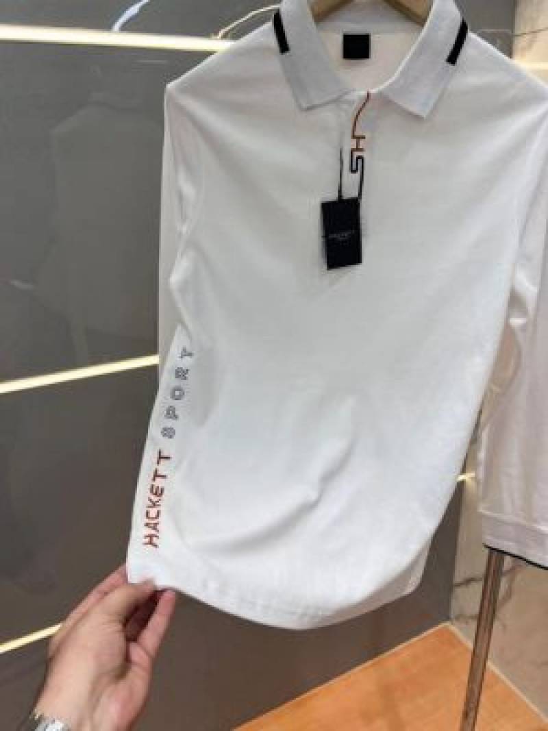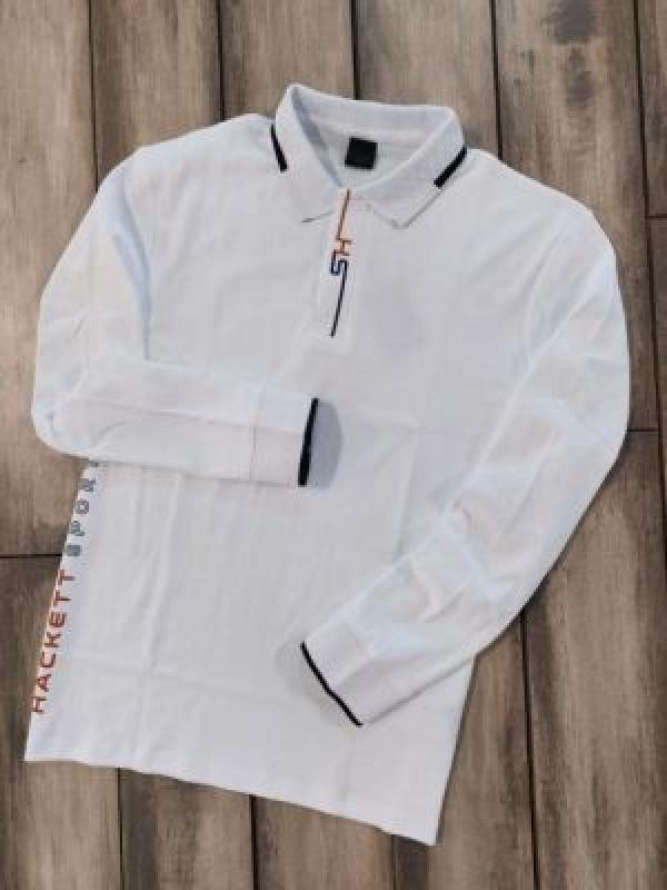 Hacket White Premium Imported Compact Yarn 240 GSM Interlock Fabric Polo Full Sleeves Tshirt with Collar Design and Front Emboss logo 3220
