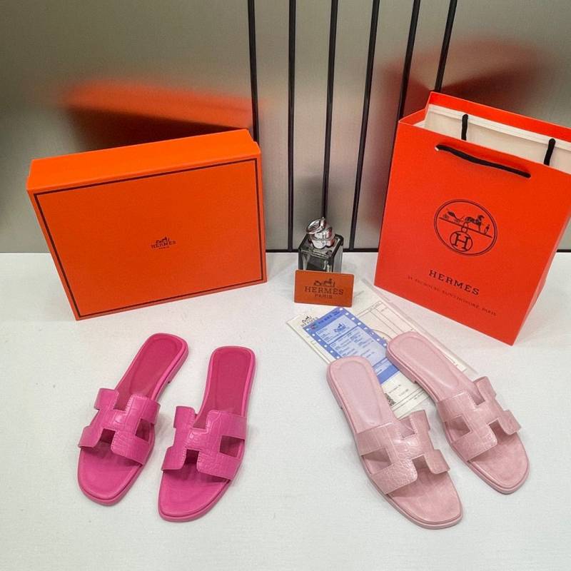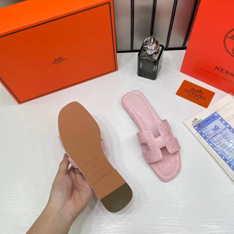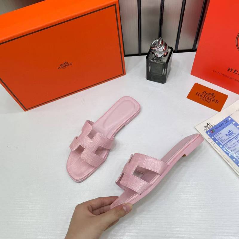 Hermes Paris Oran Flats For Her With OG Box & Carry Bag Light Pink Slide H38-13