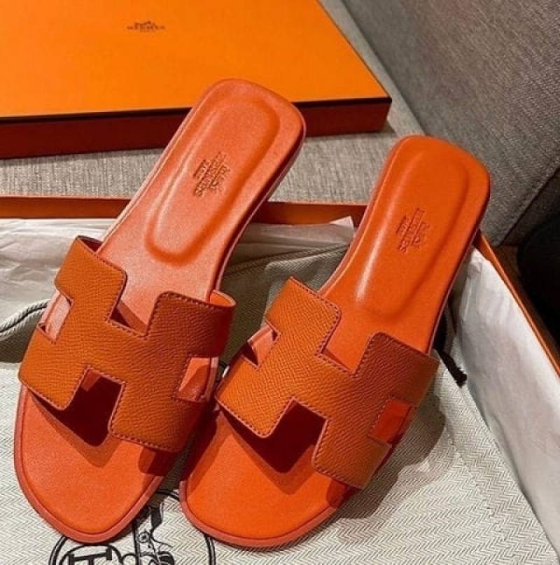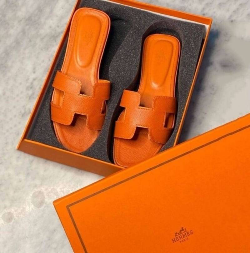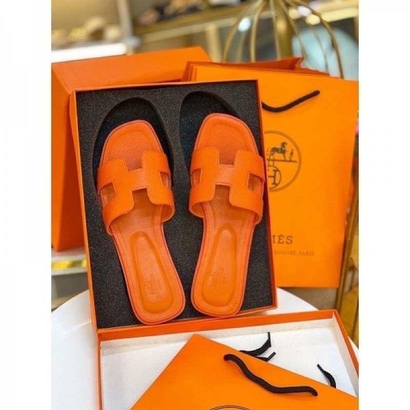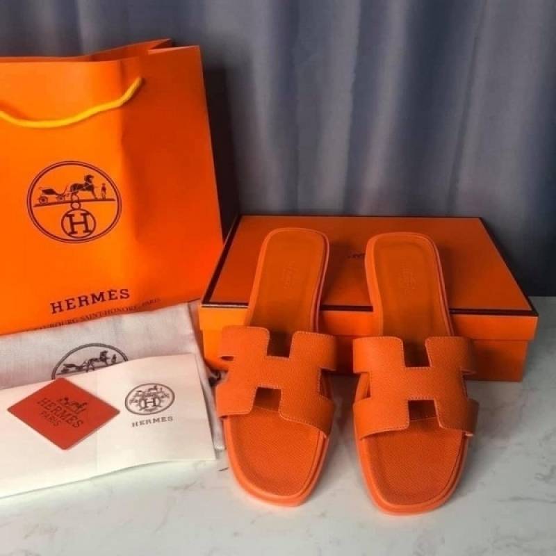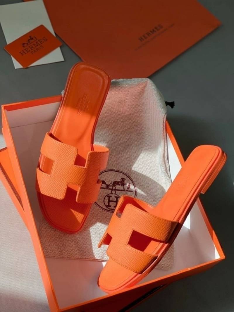 Hermes Paris Oran Flats With OG Box & Carry Bag (Orange - 750)