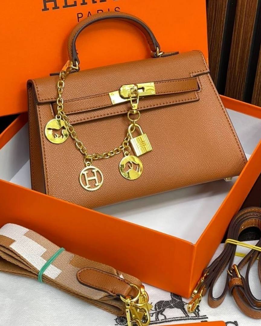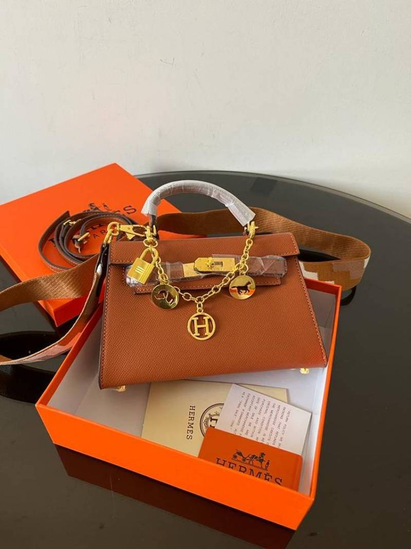 Herms Kelly Mini Epsom Leather Brown With Charms 2 Belts OG Box Dust Bag Cards And Gift Bag
