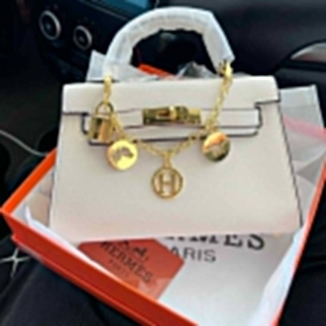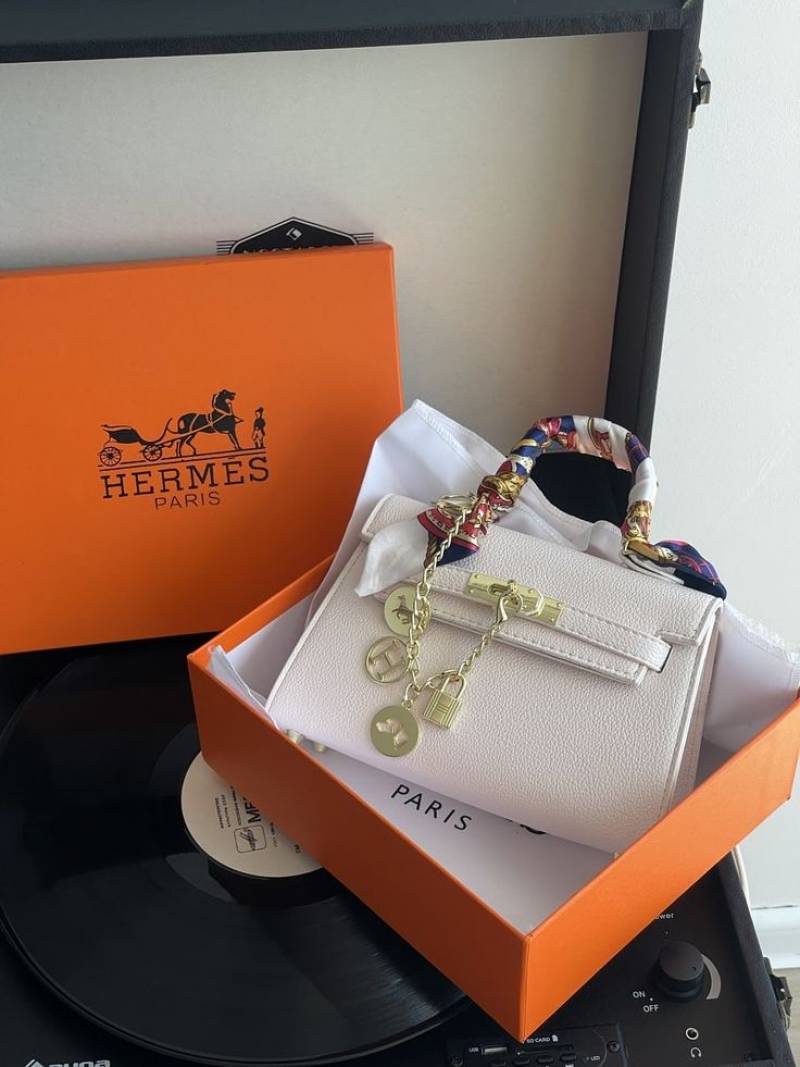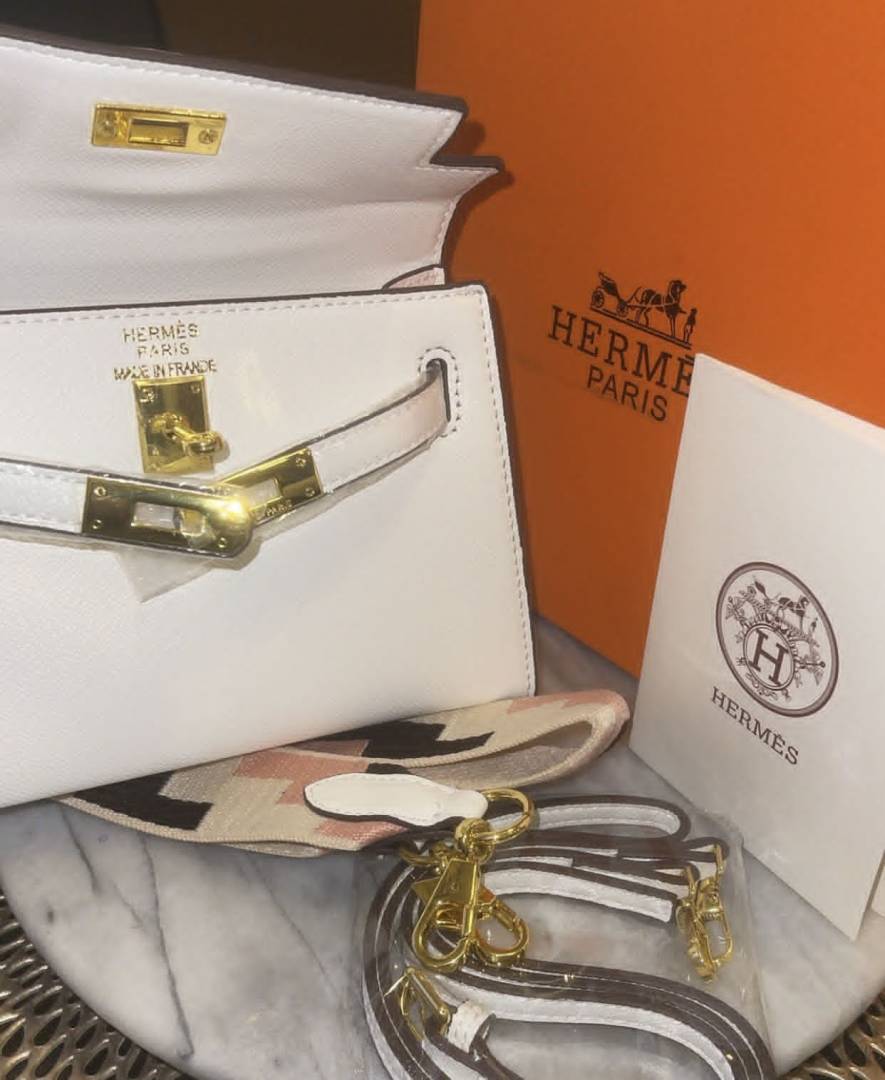 Herms Kelly Mini Epsom Leather White With Charms 2 Belts OG Box Dust Bag Cards And Carry Bag 1009
