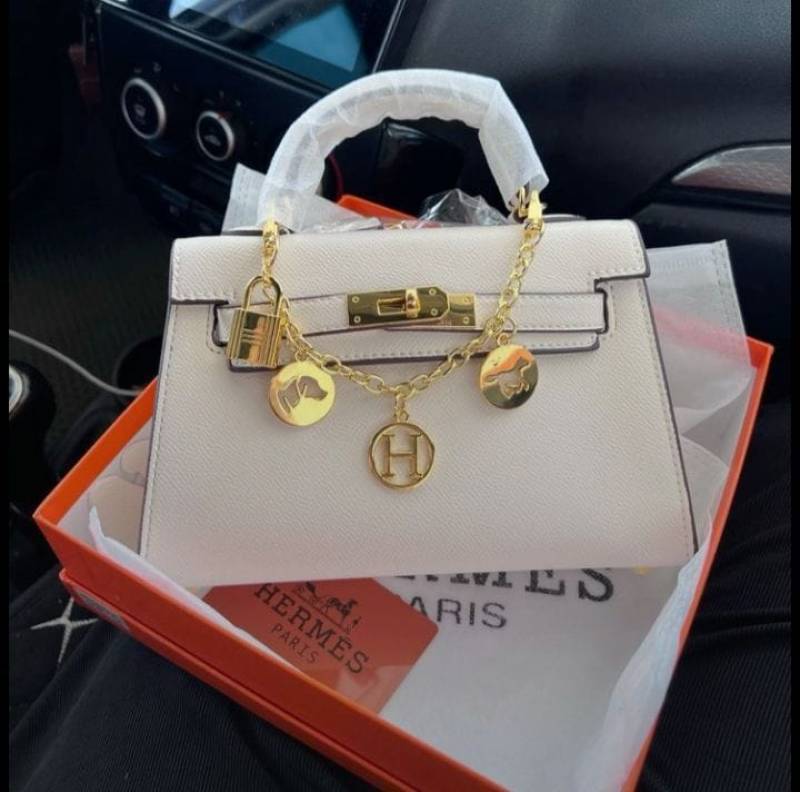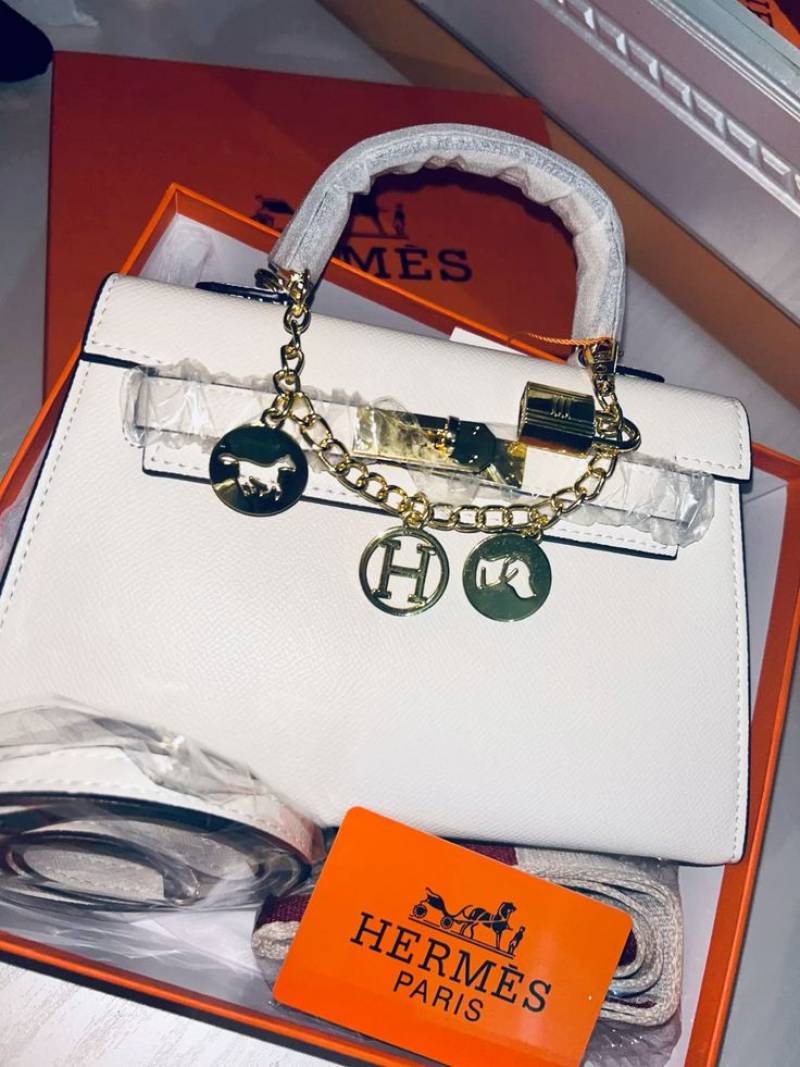 Herms Kelly Mini Epsom Leather ?White ??With Charms 2 Belts OG Box Dust Bag Cards And Carry Bag 1009