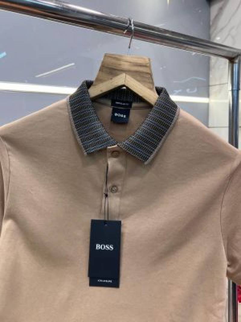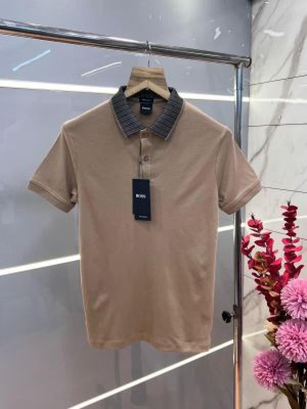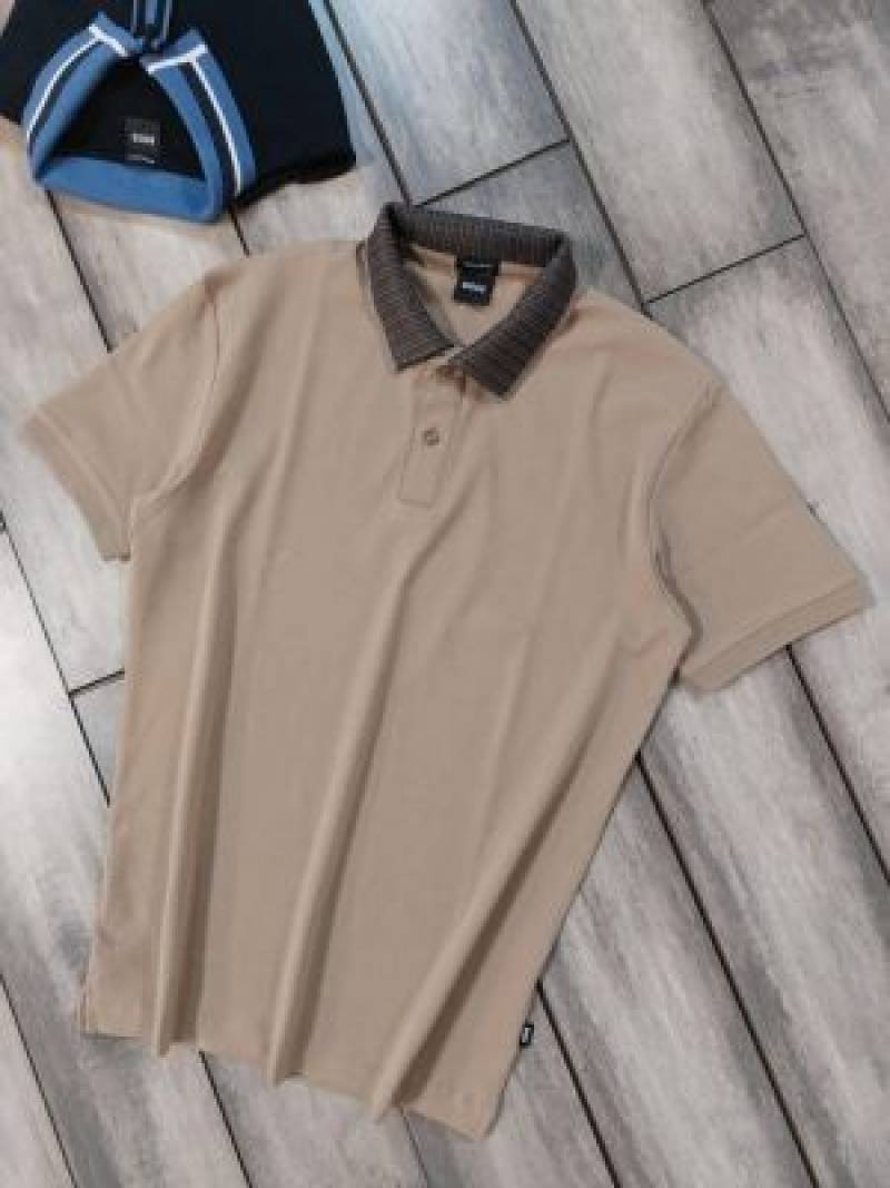 Hugo Bos s Beige Premium Imported 240 GSM Interlock Lycra Fabric Polo Tshirt with Collar Design and Emboss Logo 3607