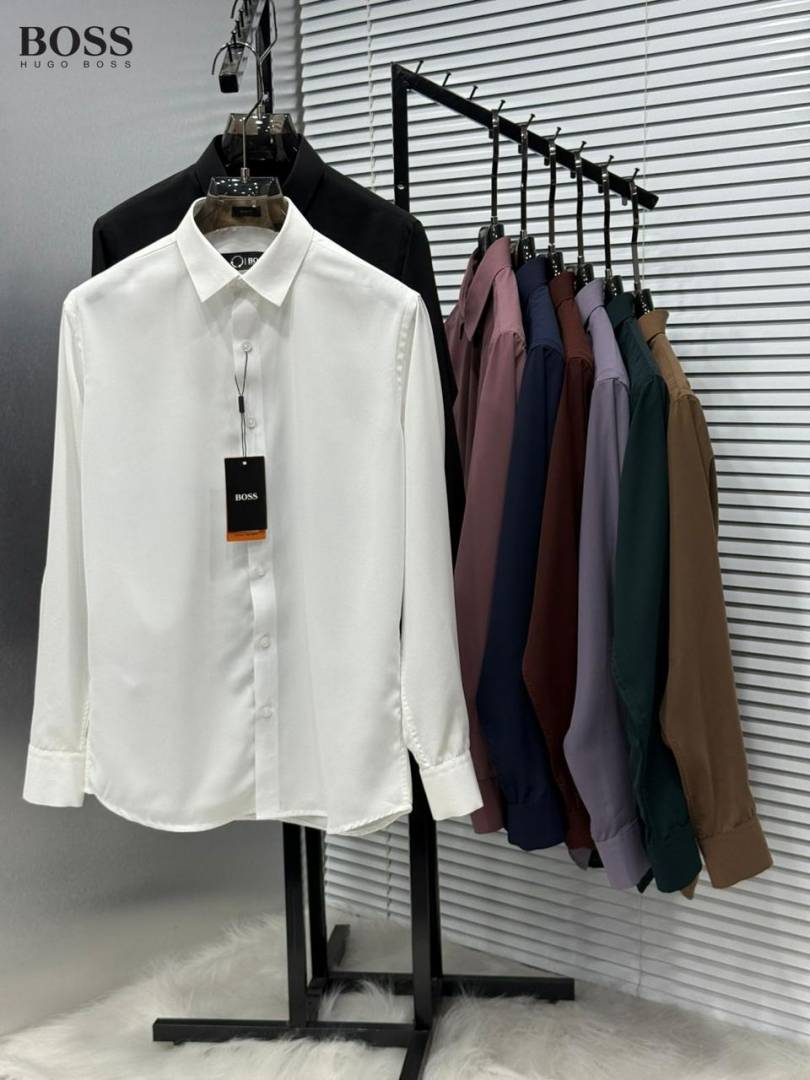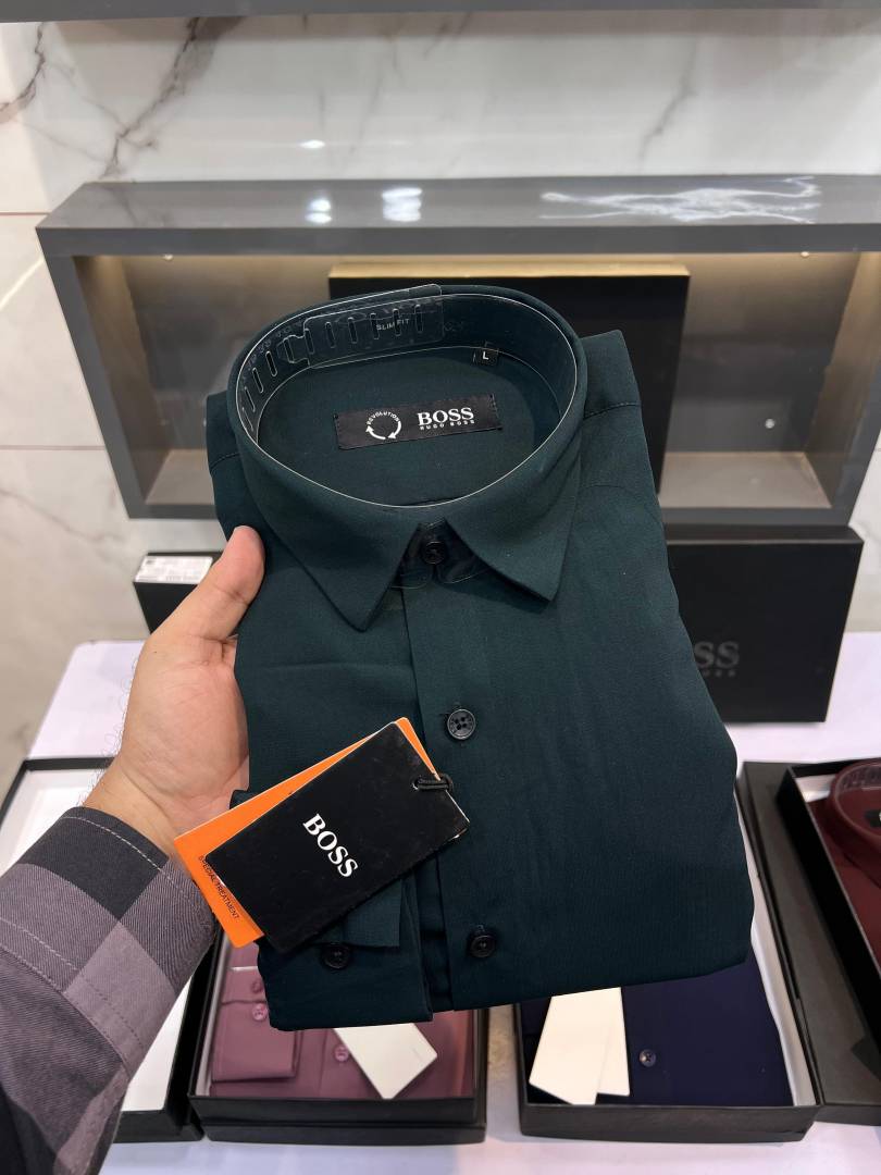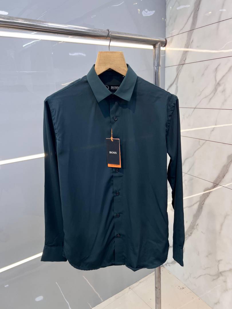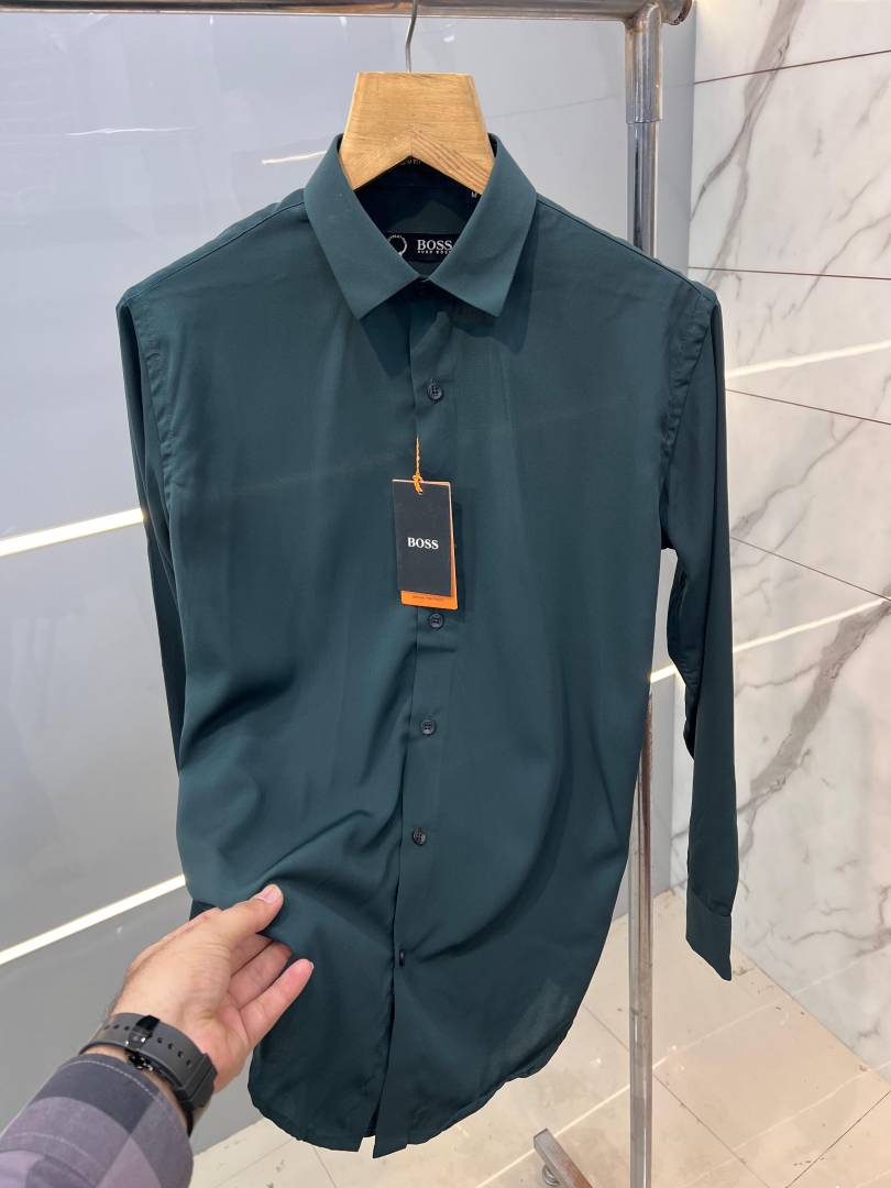 Hugo Bos s Green Premium 4way Stretchable Japanes Lycra Fabric Wrinkle Free Shirt with Brand Box 2449