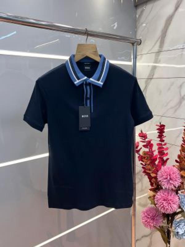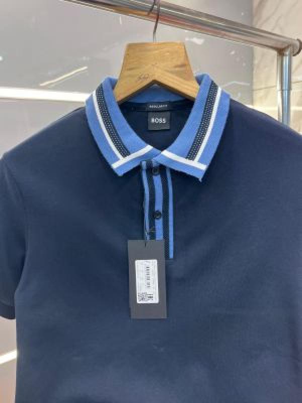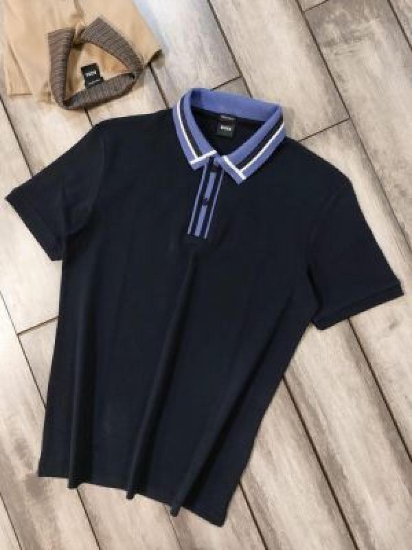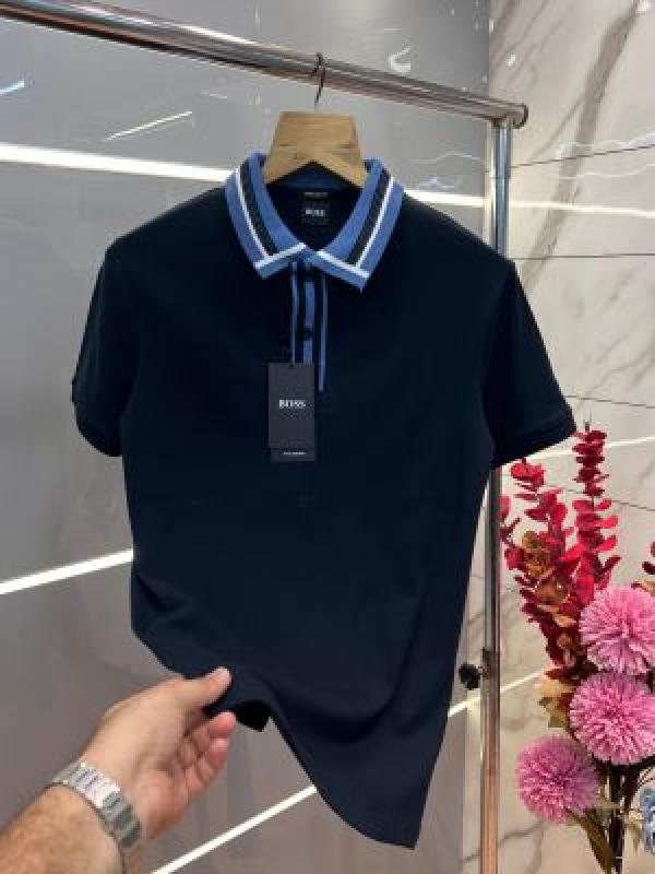 Hugo Bos s Navy Premium Imported 240 GSM Interlock Lycra Fabric Polo Tshirt with Collar Design and Emboss Logo 3606