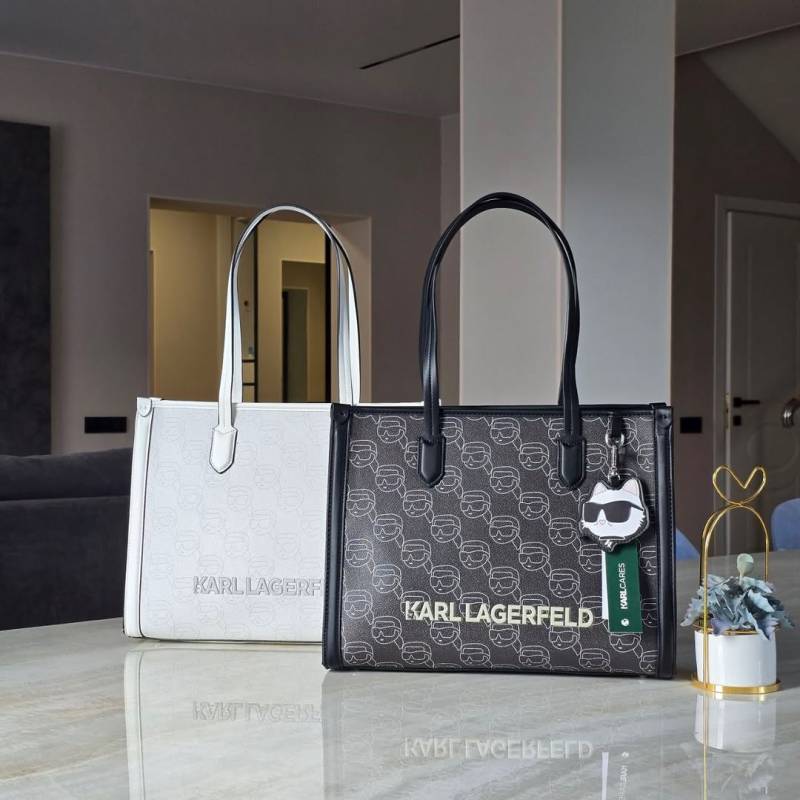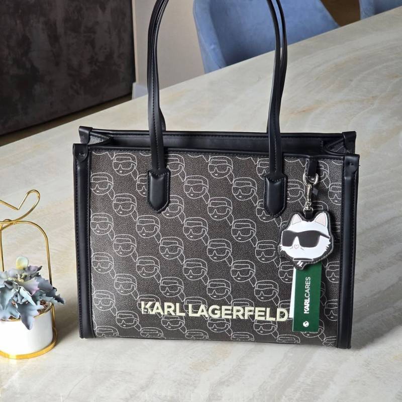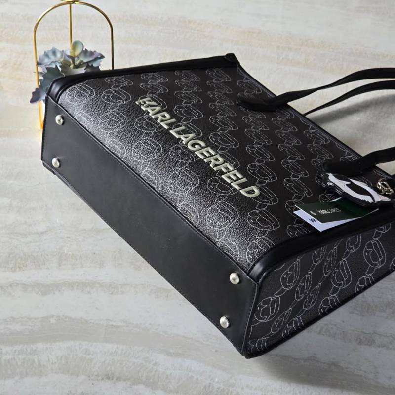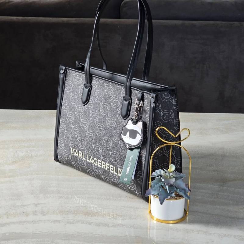 Karl Lagerfeld Textured Ikon Medium Structured Shoulder Bag Black With Dust Bag