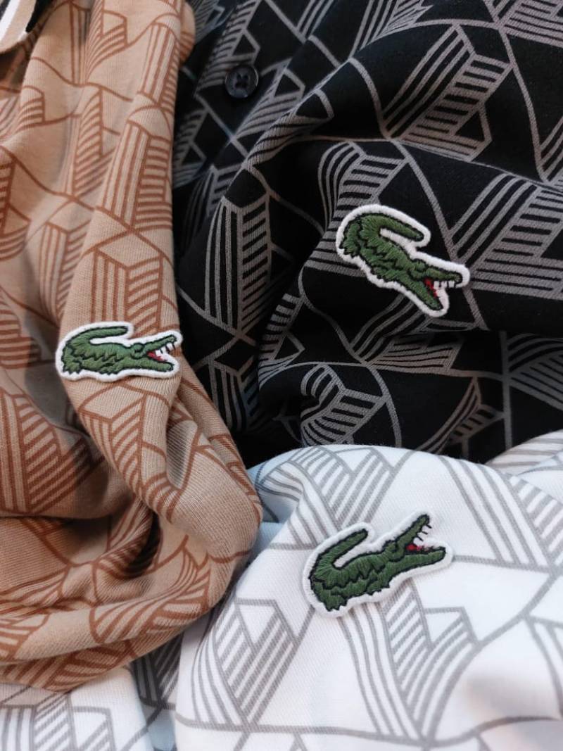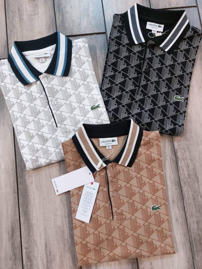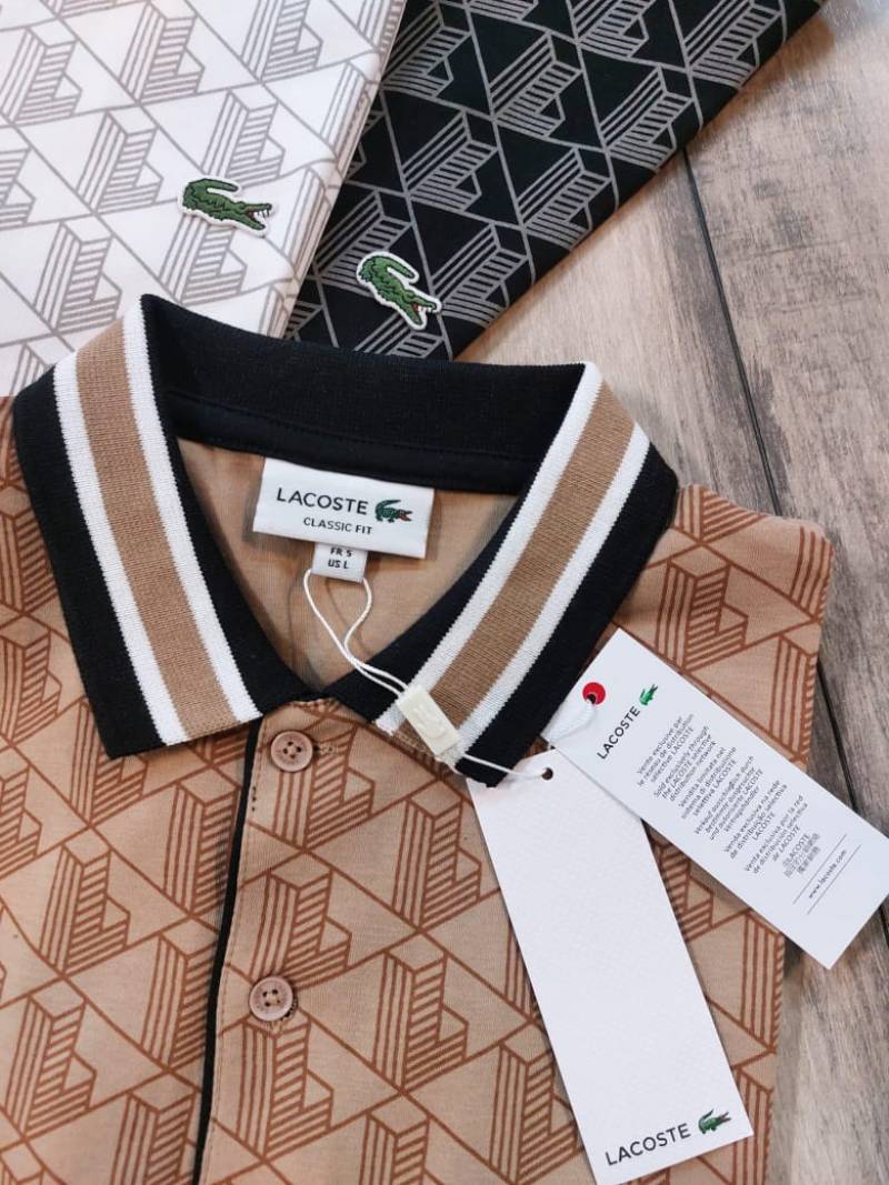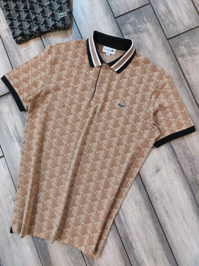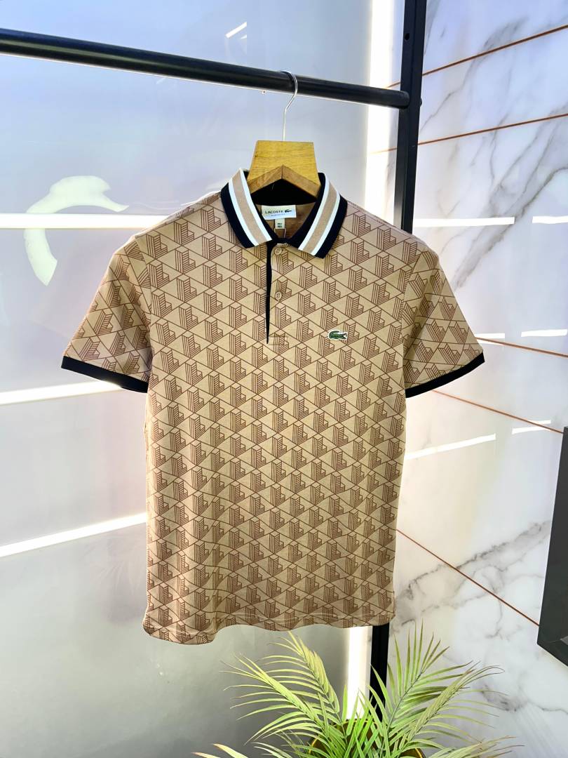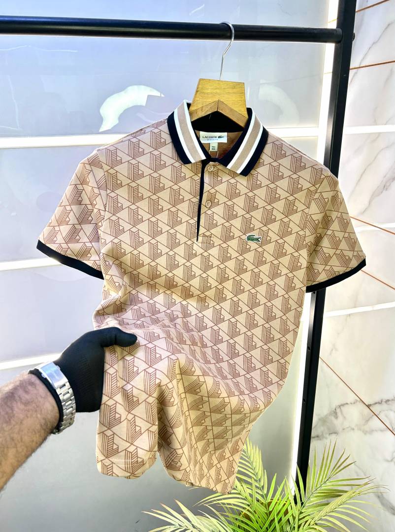 Lacost e Beige Monogram Polo Premium Collar Neck T-shirt F2917-BE