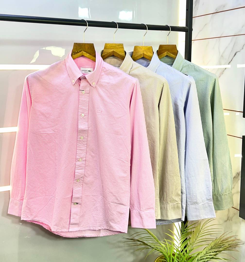 Lacost e Beige Oxford Lycra Premium Checks Shirts F2706-BE