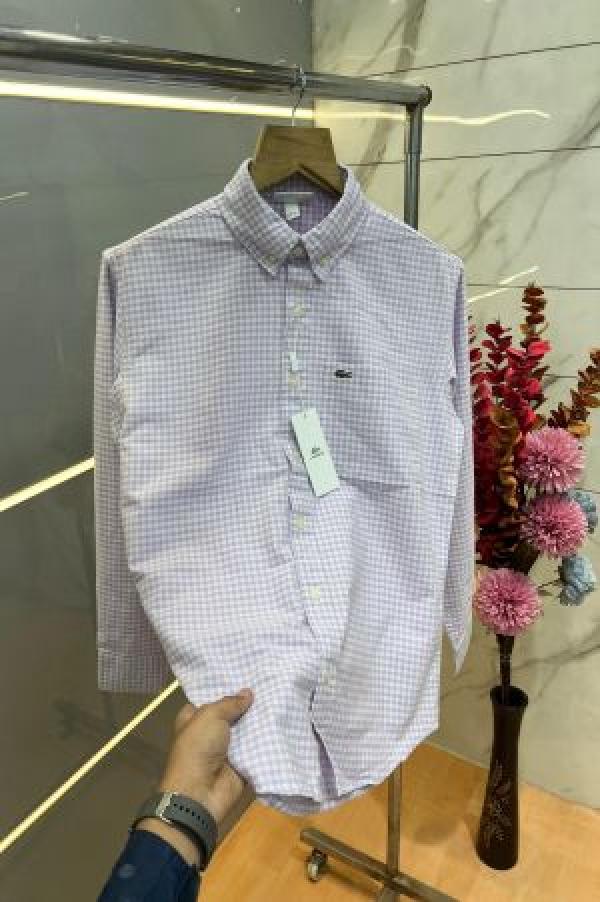 Lacost e Lavender Premium Shirt 100% Oxford Cotton Fabric With custom Branded Button Tagging And Brand Poly Bag 3831