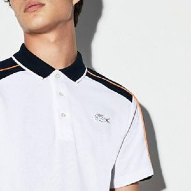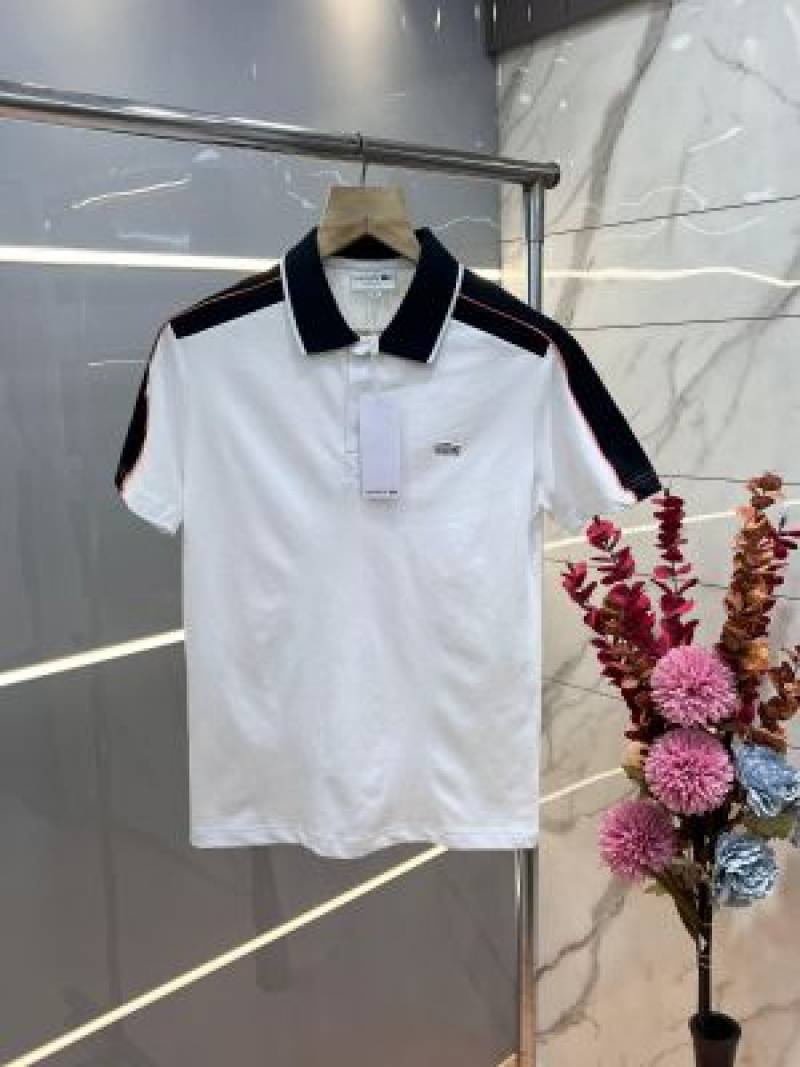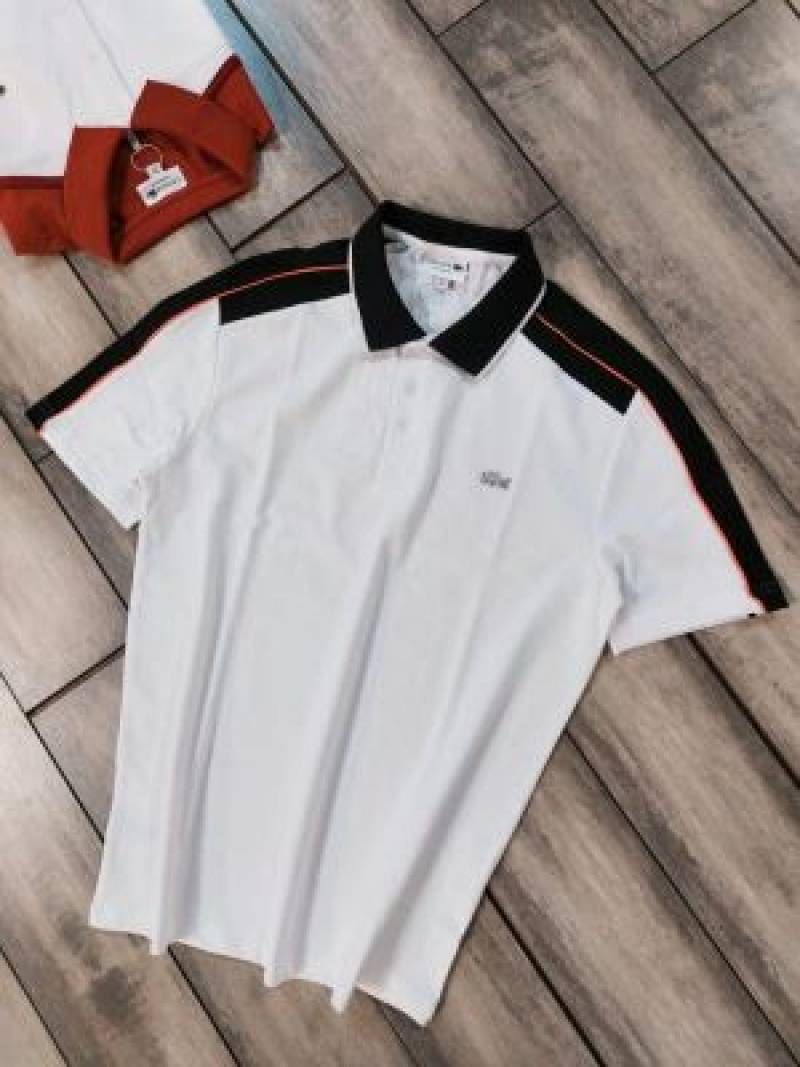 Lacost e White Premium Cotton Pique fabric Polo Tshirt with Shoulder Design and Embroidered Logo 3536