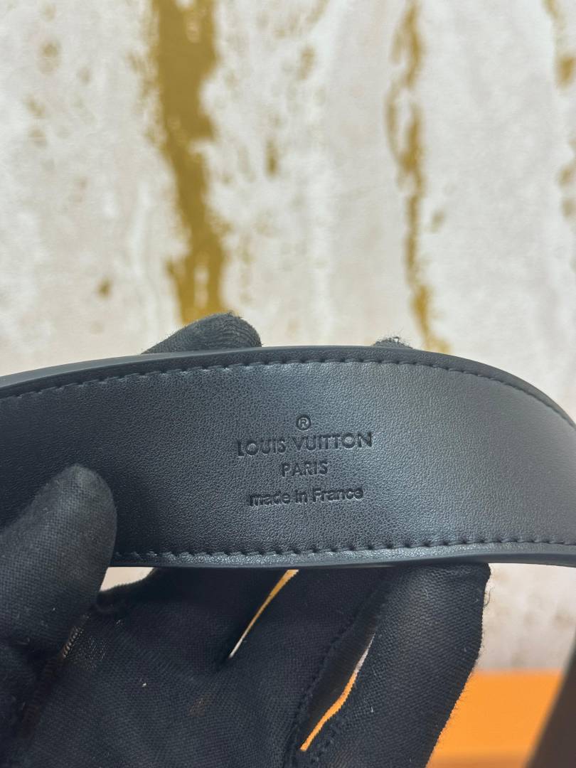 Louis_Vuitton Black Leather Belt With LV Initiales Buckle Includes Box and Carry Bag (24-1)