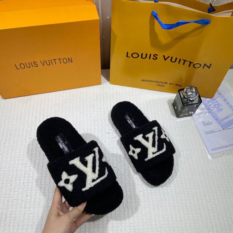 Louis_Vuitton_Furry_Black_White_Slippers_For_Her_With_OG_Box_Dust_Bag_&_Carry_Bag_Black_White