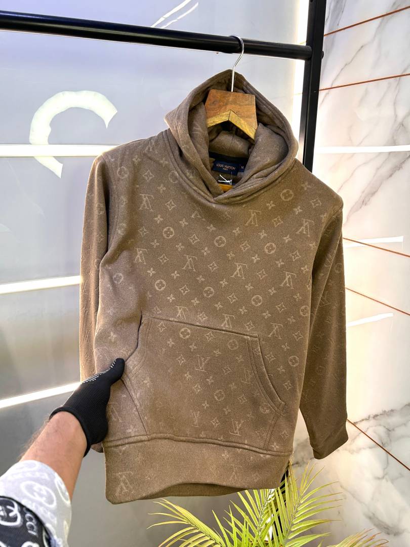 Louis_Vuitton Imported Monogram Print Brown Super Premium Hoodie F1122-BR
