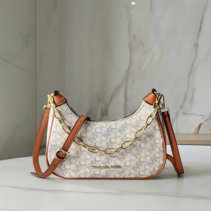 Michael_Kors_Cora_Mini_Zip_Pouchette_Signature_Logo-Print_Canvas_With_Gold_Tone_Hardware_With_OG_Box_Dust_Cover_&_Carry_Bag_100822_Beige_Brown