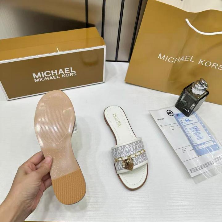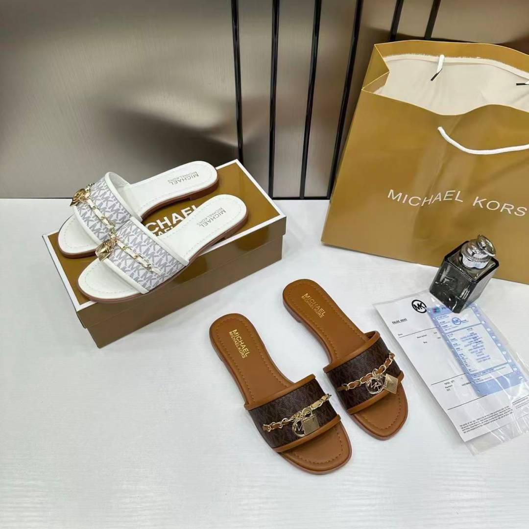 Michael_Kors_Mandy_Signature_Logo_Slide_Sandal_Beige_With_OG_Box_&_Carry_Bag_918-6_Beige