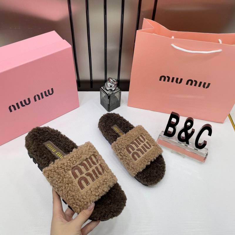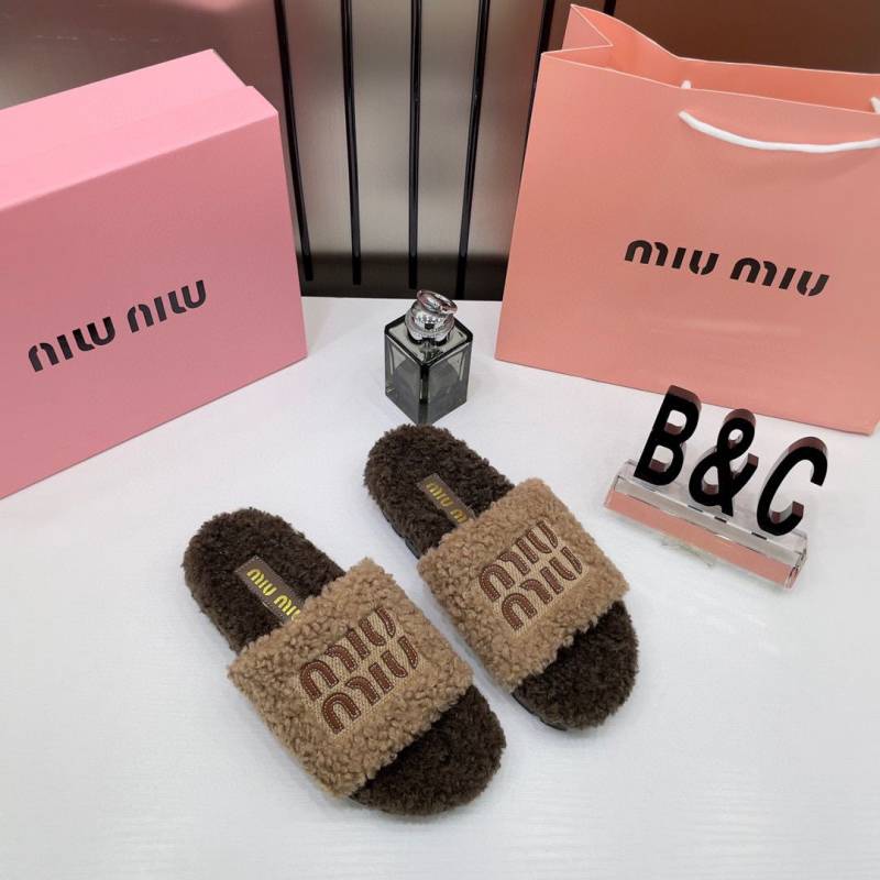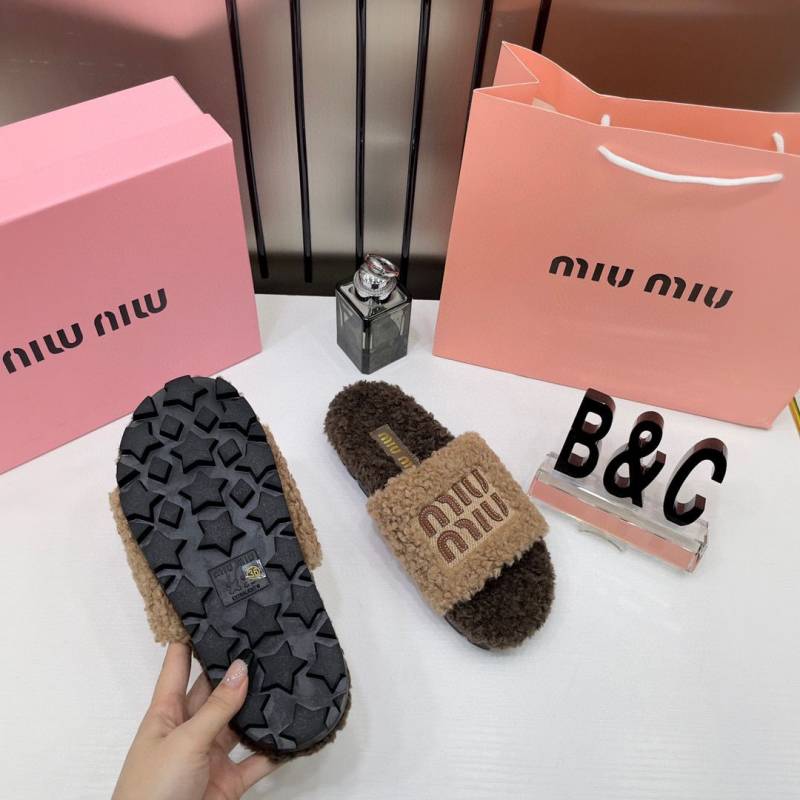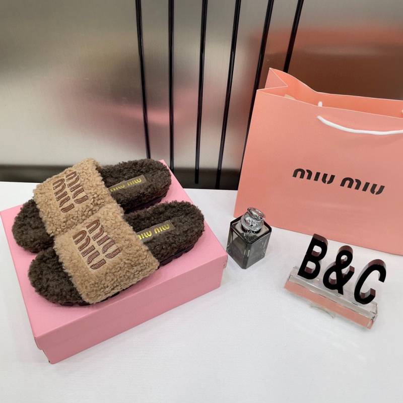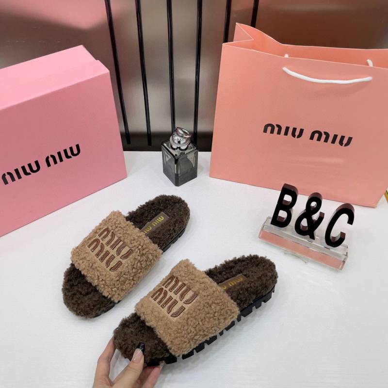 Miu Miu Fur Beige Brown Slippers For Her With OG Box Dust Bag & Carry Bag Beige Brown- 24D