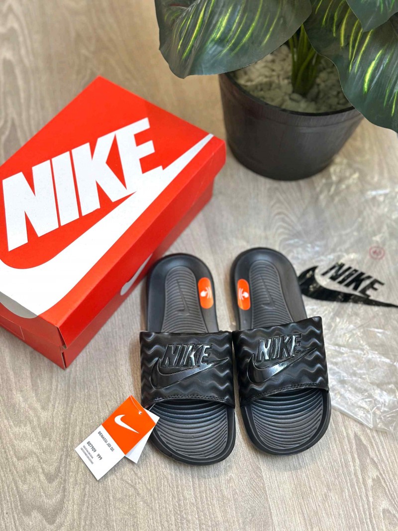 Nik.e Victori One Classic Textured Premium All Black Flip-Flop
