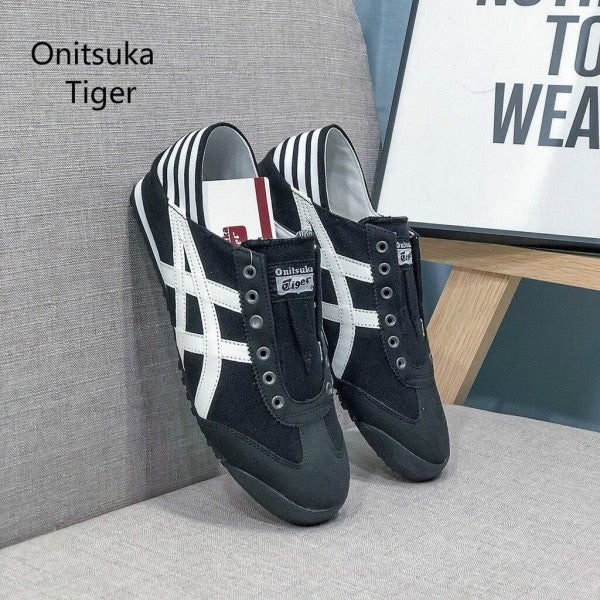 The Onitsuka Tiger Mexico 66 Slip-On is the ultimate convenience-focused reimagining of the classic 1966 silhouette. By removing the laces and adding an internal elastic band, this model creates a sleek, laceless profile that is incredibly easy to wear. The Black/White colorway is a "closet essential," offering a sharp, high-contrast look that matches perfectly with anything from pleated skirts to baggy streetwear.