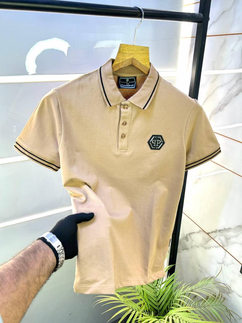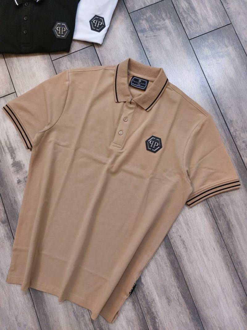 Philip Plein Imported Polo Metal Logo Brown Collar Neck T-shirt F2671-BR
