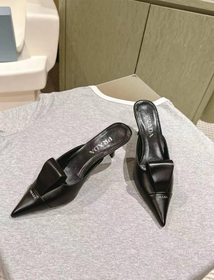 Prada_Black_Brushed_Heel_Mule_For_Women_With_Original_Box