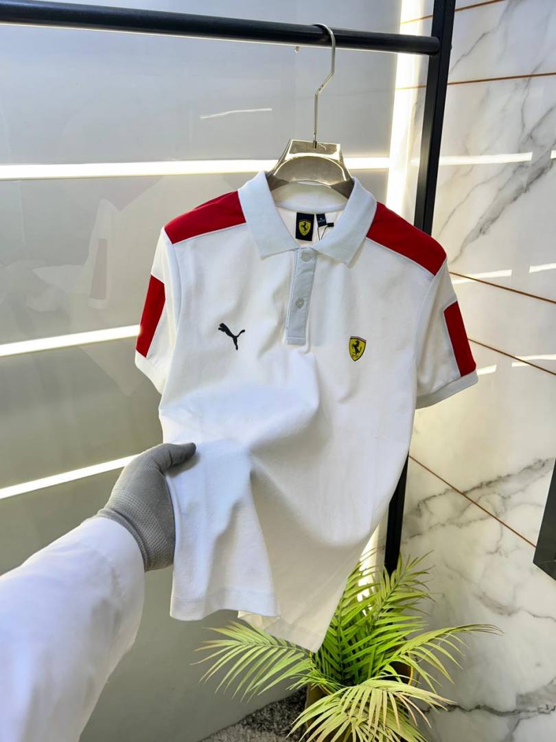 Pum a Ferrari Edition Polo Premium White Collar Neck T-shirt F2953-WH