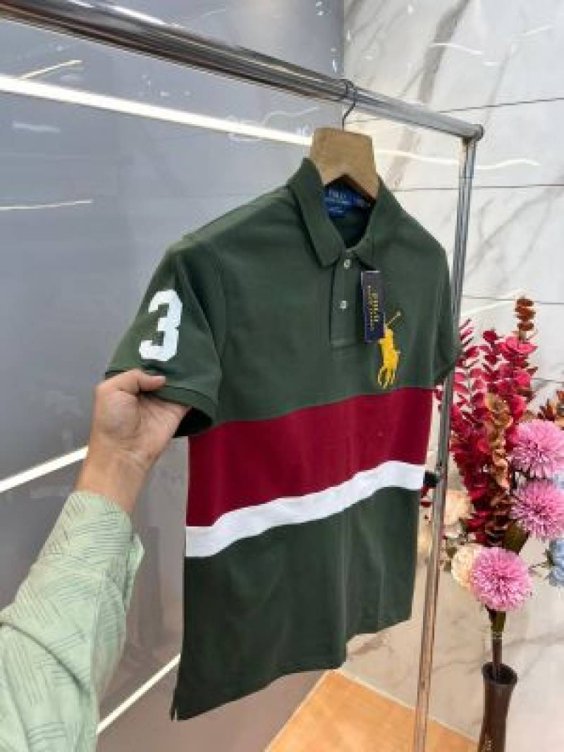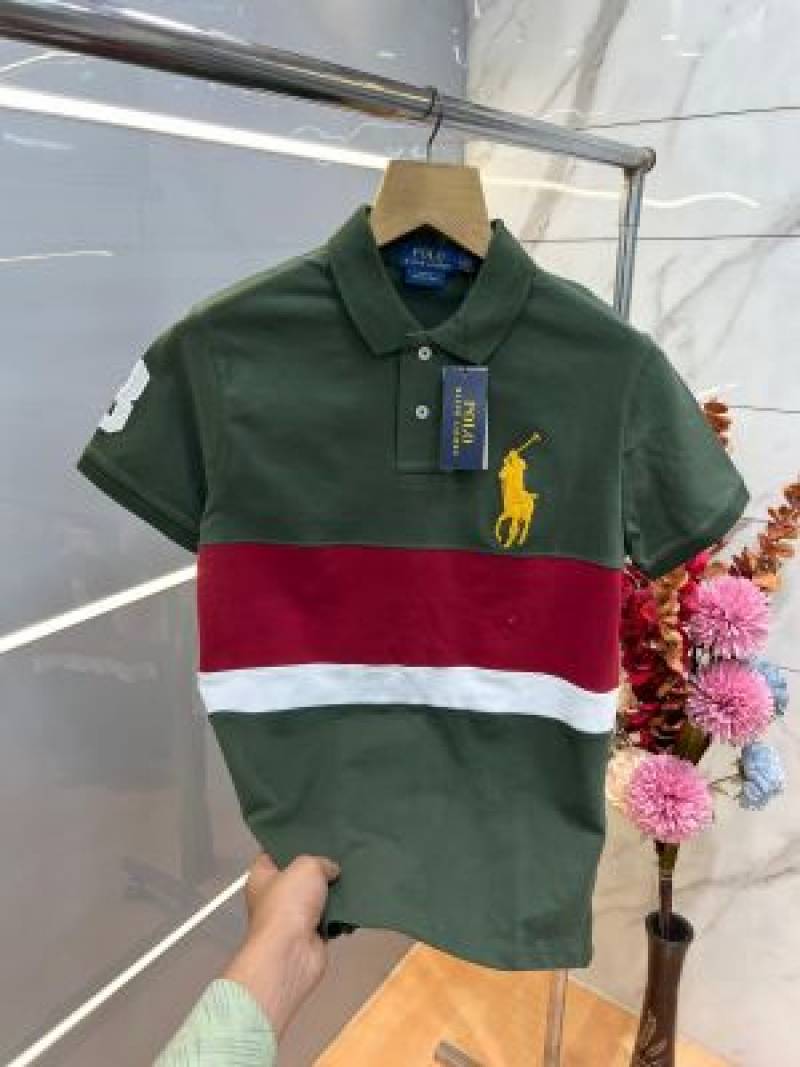 Ralp h Laure n Green Premium Cotton Pique fabric Polo Tshirt with Front Design and Embroidered Logo 3795