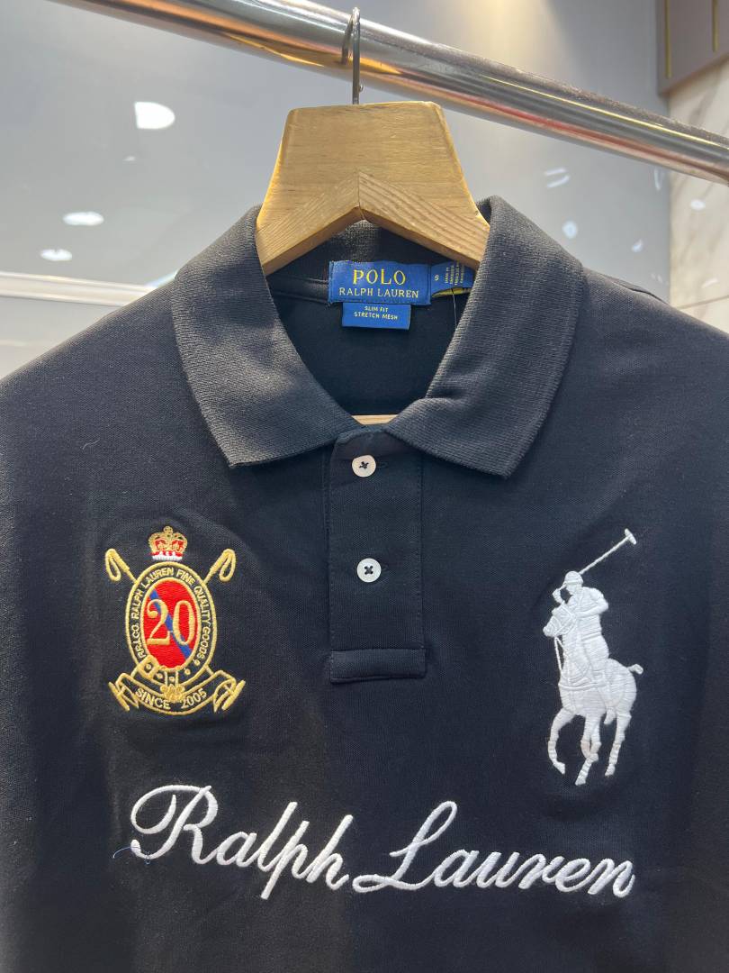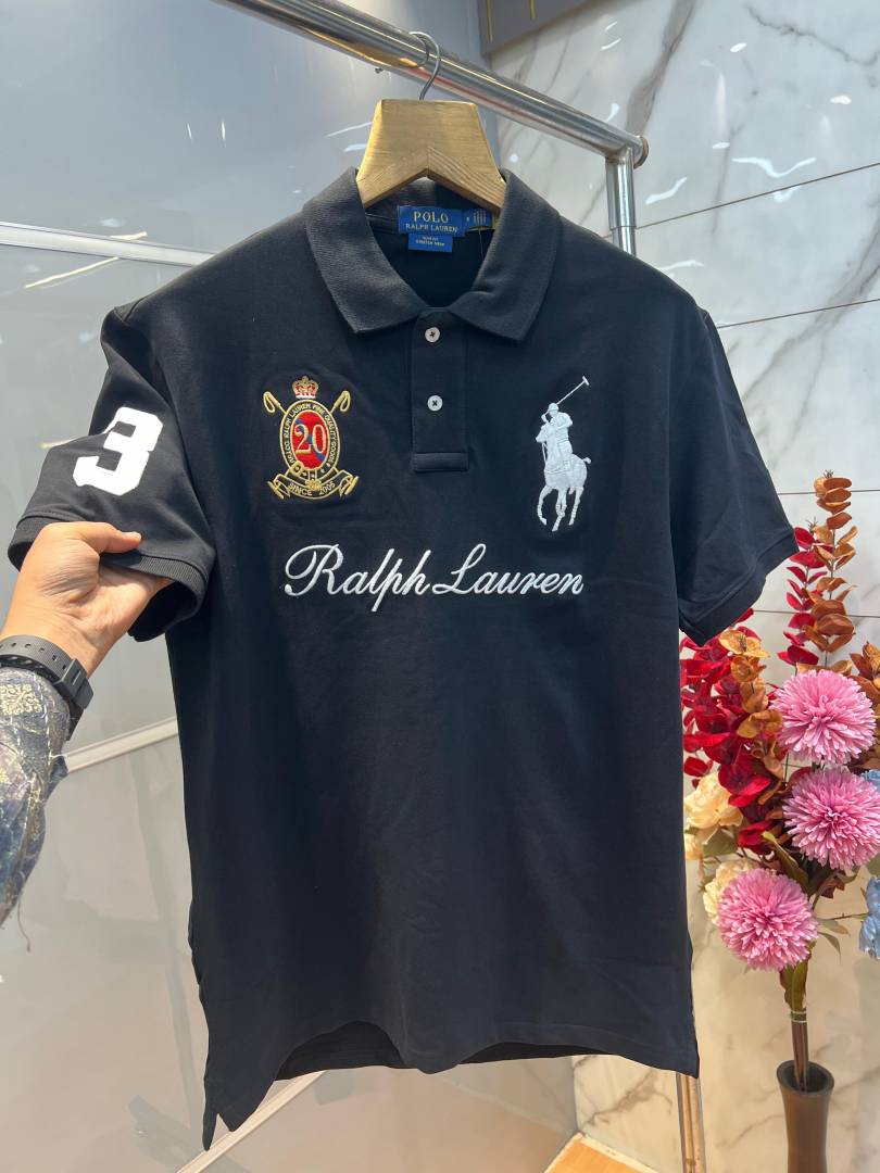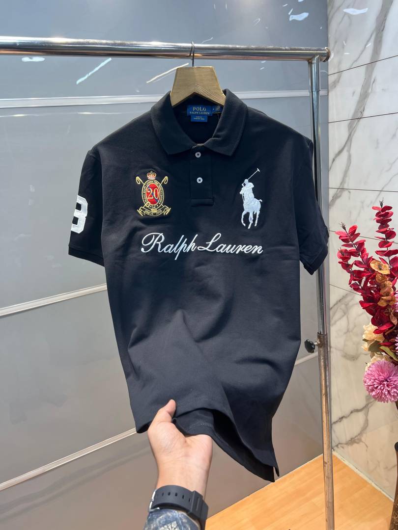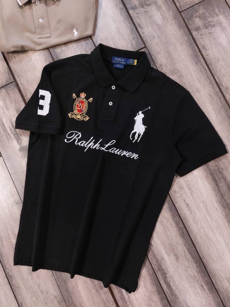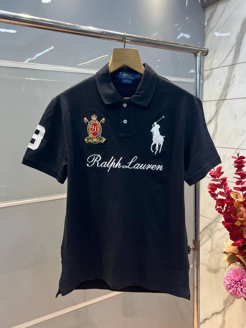 Ralp h Lauren Black Premium Cotton Pique fabric Polo Tshirt with Front Design and Embroidered Logo 4096