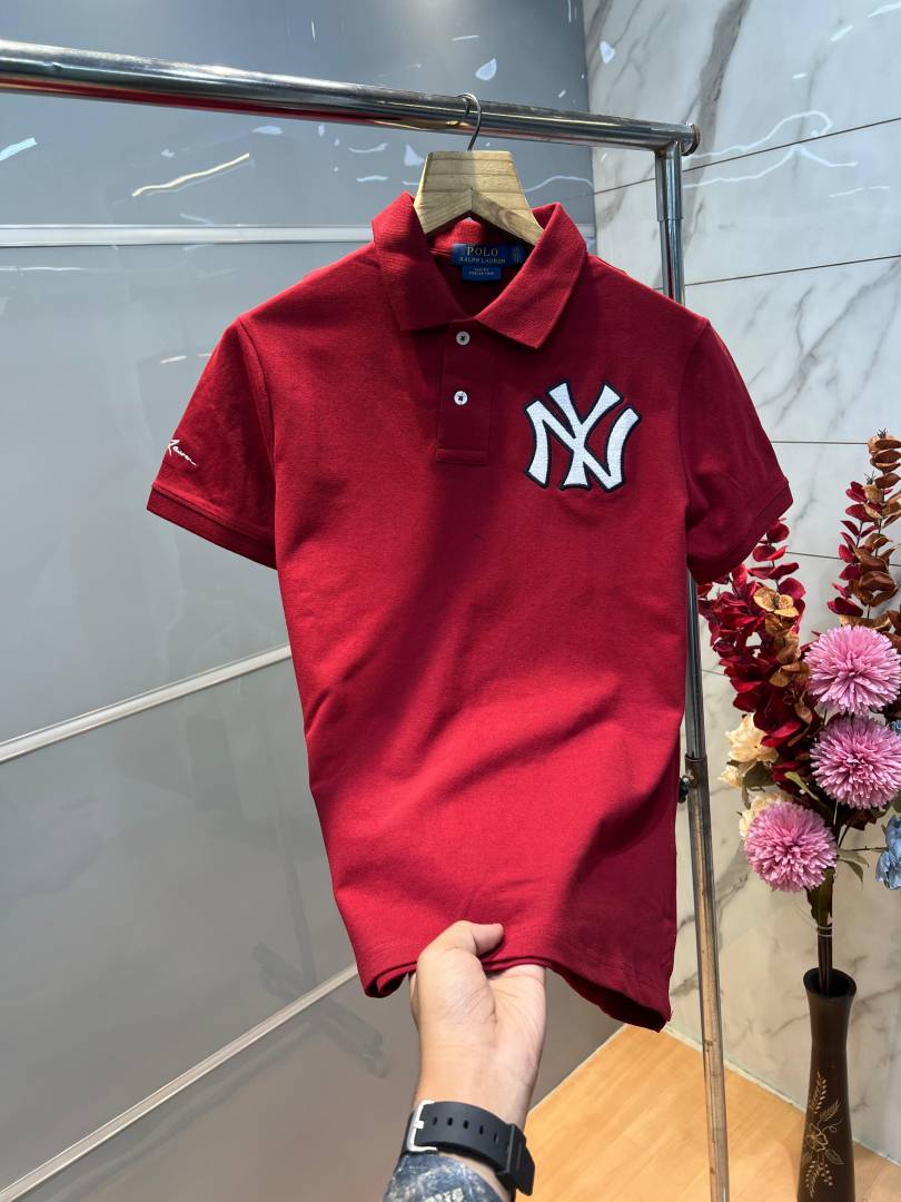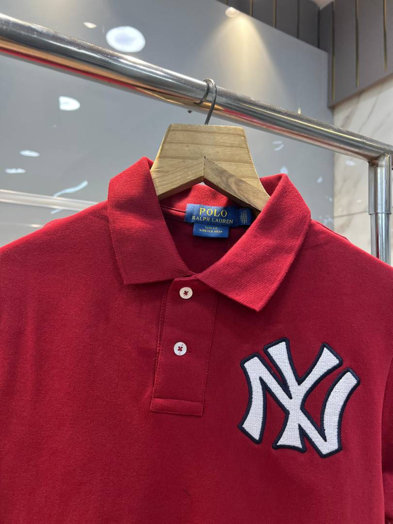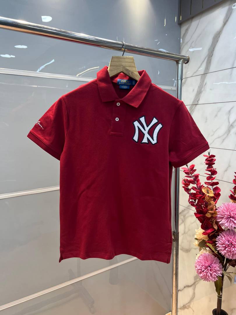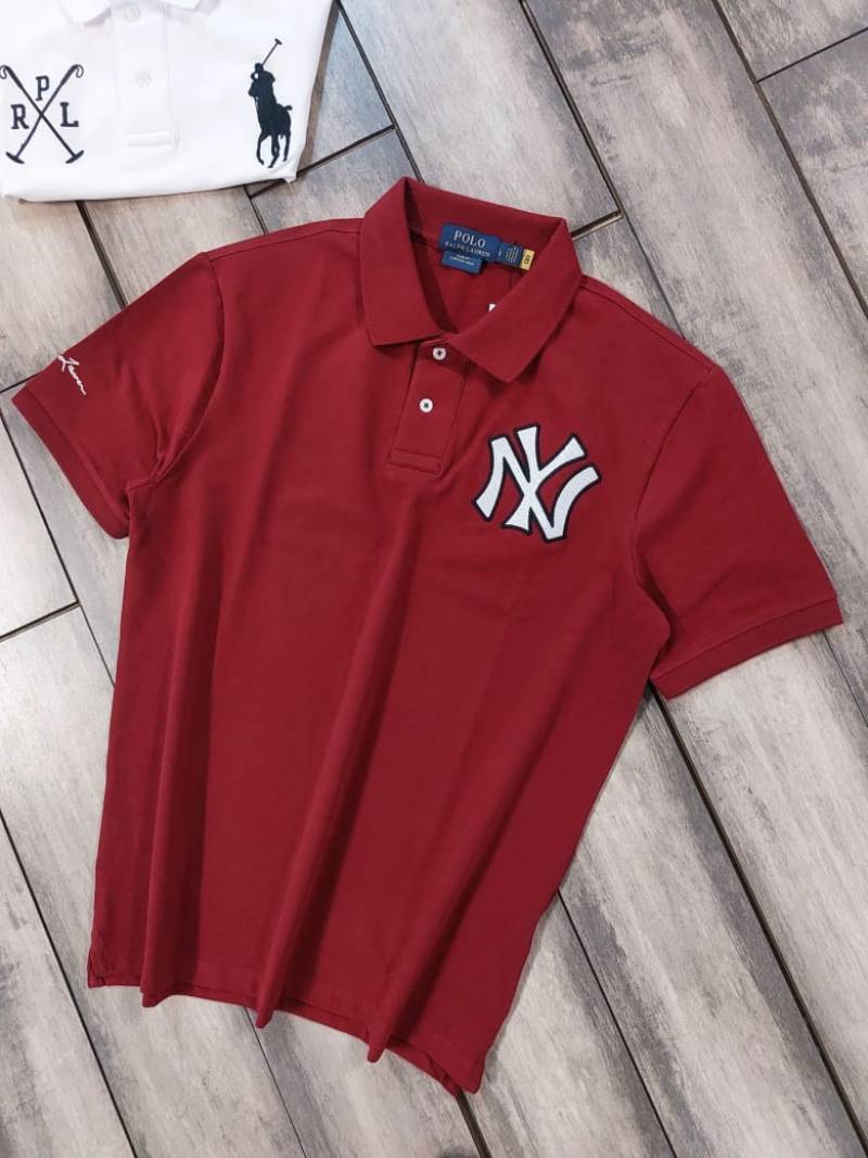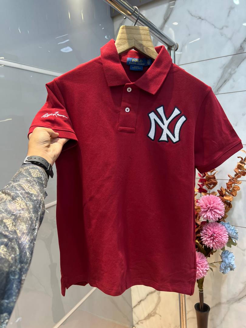 Ralp h Lauren Maroon Premium Cotton Pique fabric Polo Tshirt with Front Design and Embroidered Logo 4093