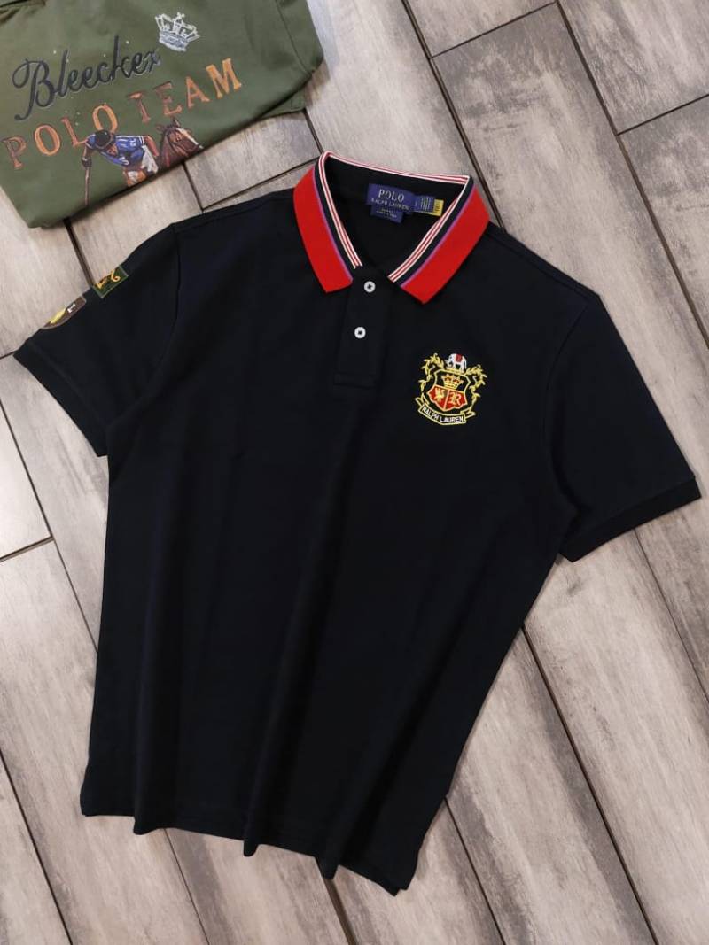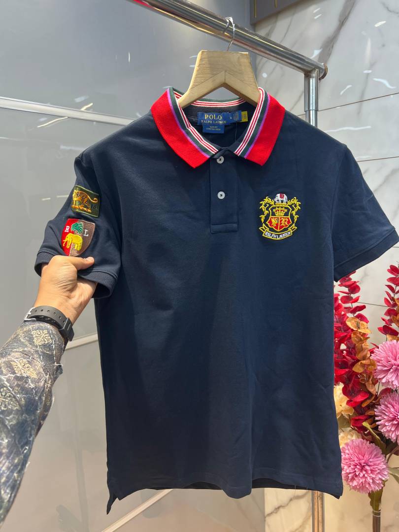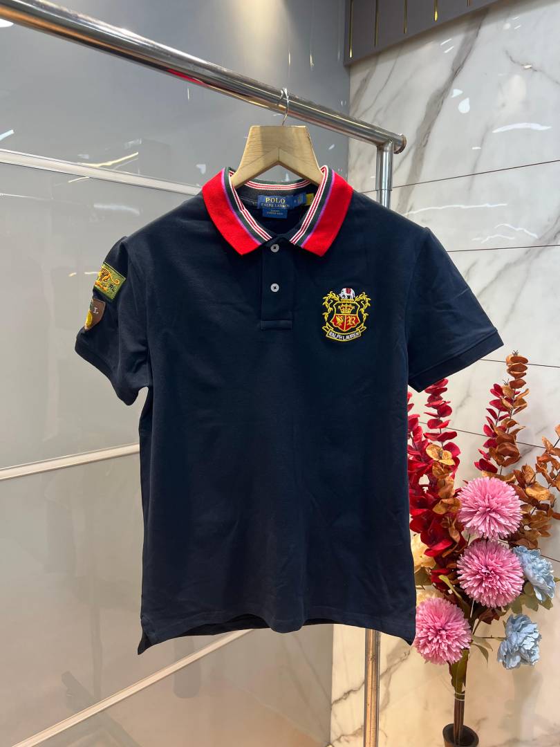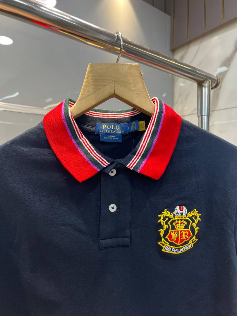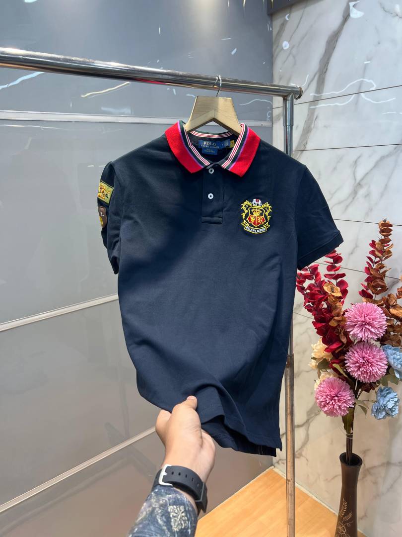 Ralp h Lauren Navy Premium Cotton Pique fabric Polo Tshirt with Collar Design and Embroidered Logo 4094
