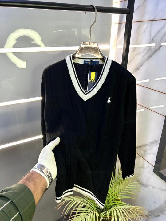 Ralph_Lauren Black knitted Super Premium V Neck Pullovers F3259-BL