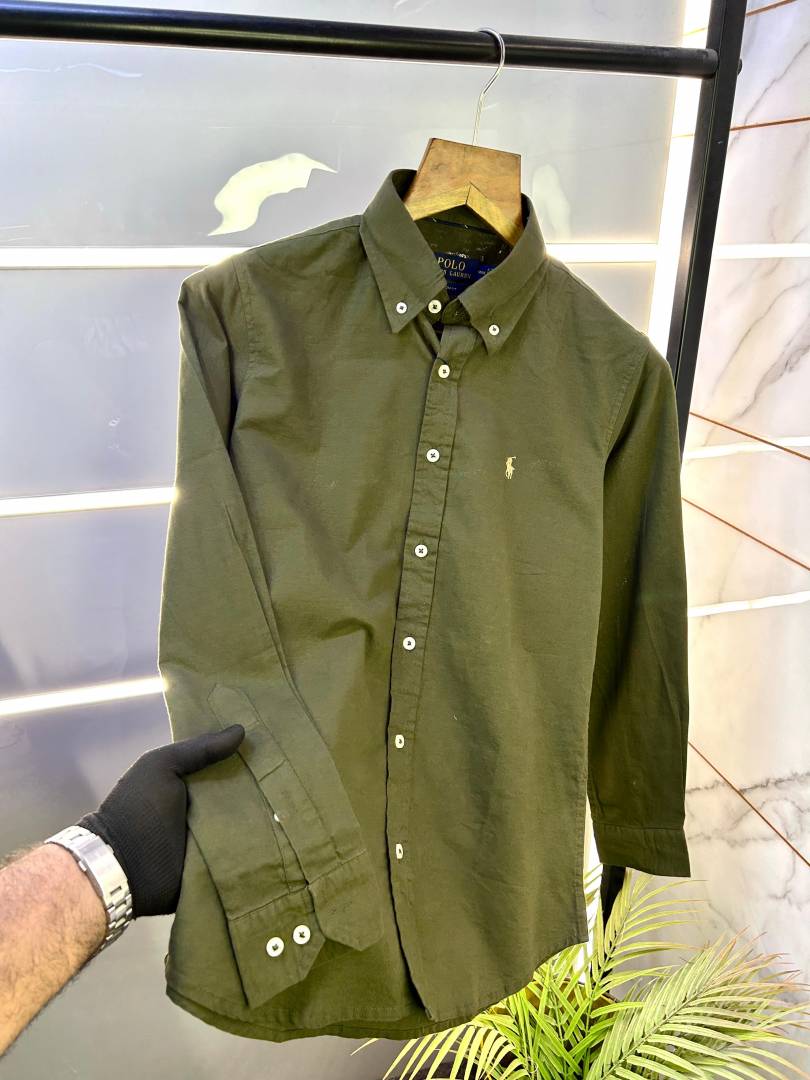 Ralph_Lauren Polo Olive Oxford Lycra Embroidery Logo Premium Shirt F2841-OL