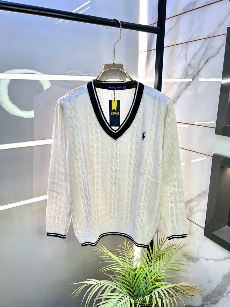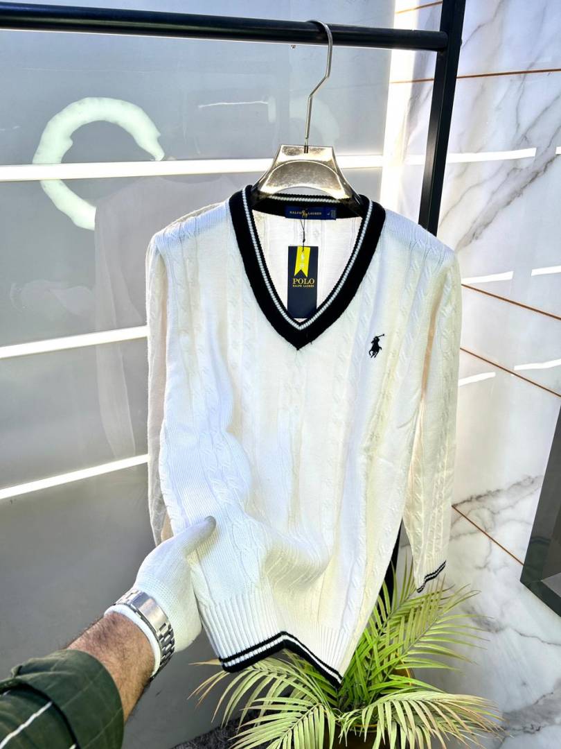 Ralph_Lauren White Imported knitted Super Premium V Neck Pullovers F3150-WH