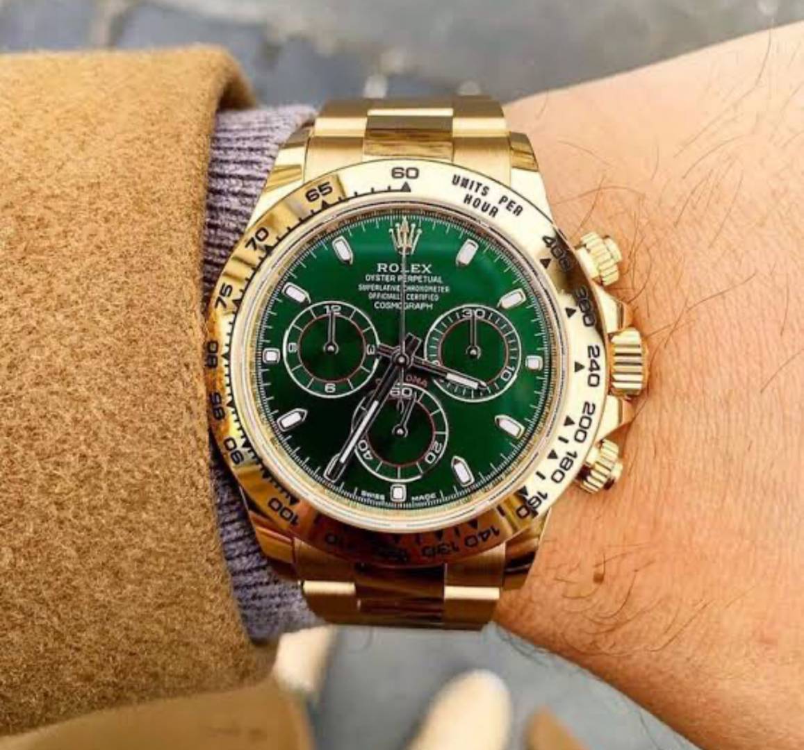 Role x_Daytona_18CT_Chronograph_Working _Mens_Gold_Green
