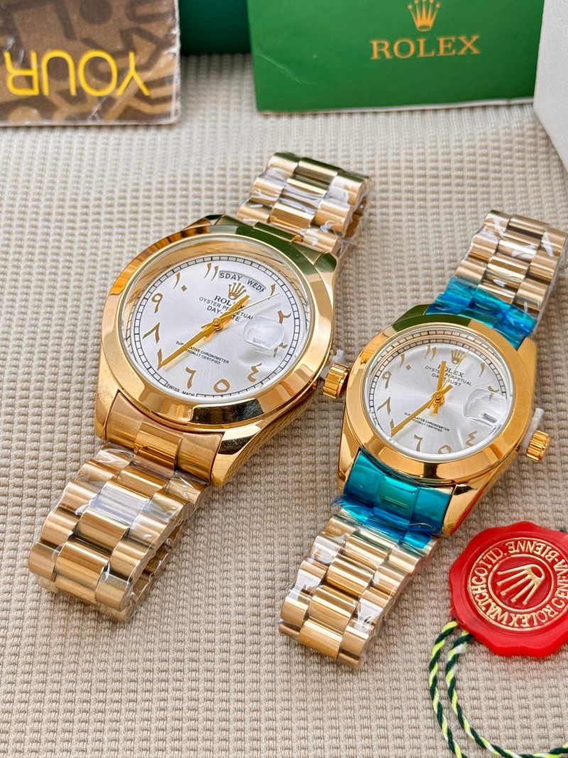 Rolex_Couple_Arabic_Day_Date_Quartz_Gold_White_Dial