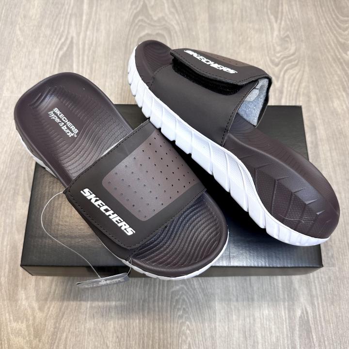 Skecher.s Go Recover Adjust Premium Coffee White Slides