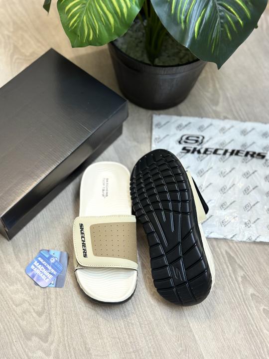 Skecher.s Go Recover Adjust Premium Beige Black Slides