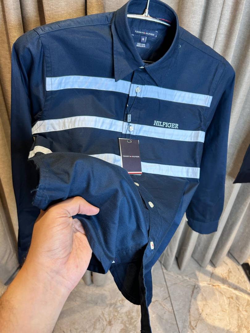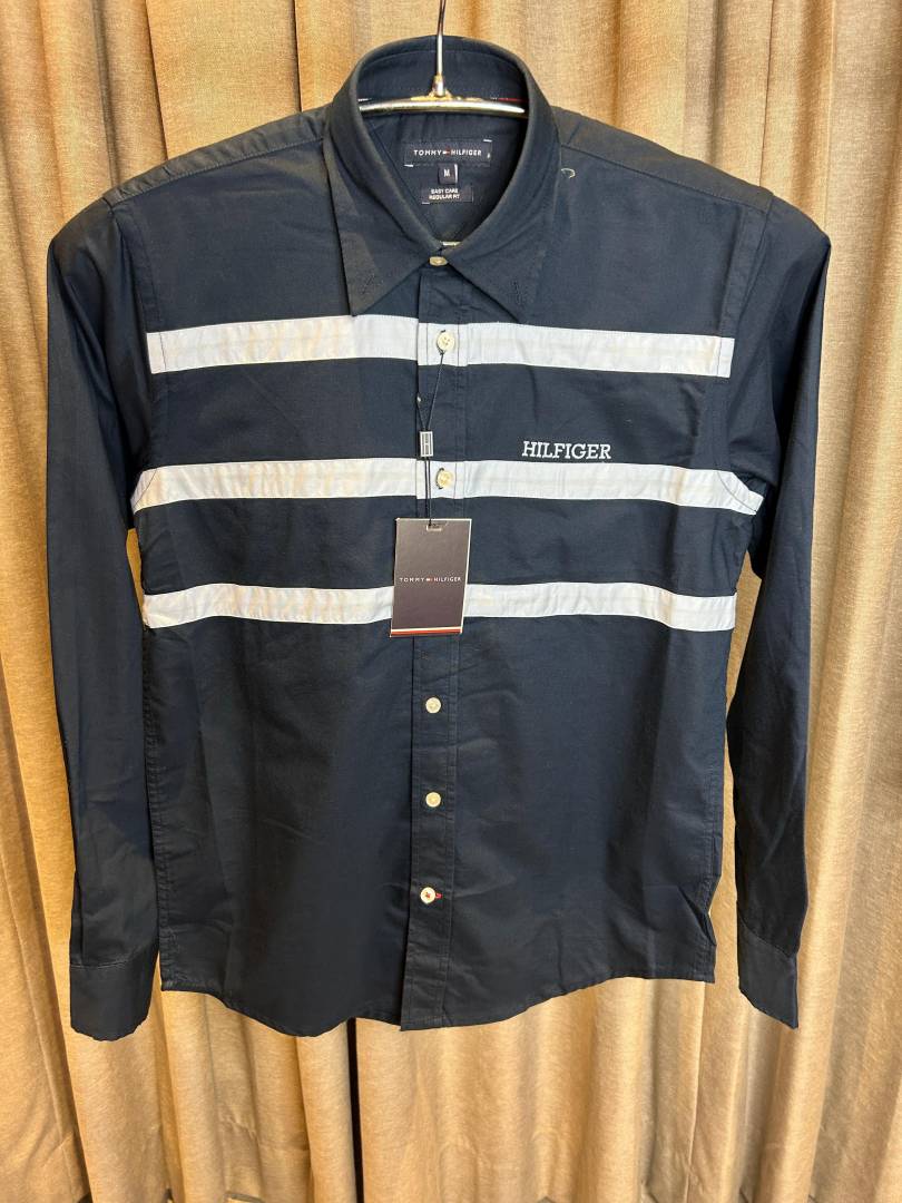 TOMMY HILFIGE_R NAVY BLUE FRONT STRIPES OXFORD SHIRT