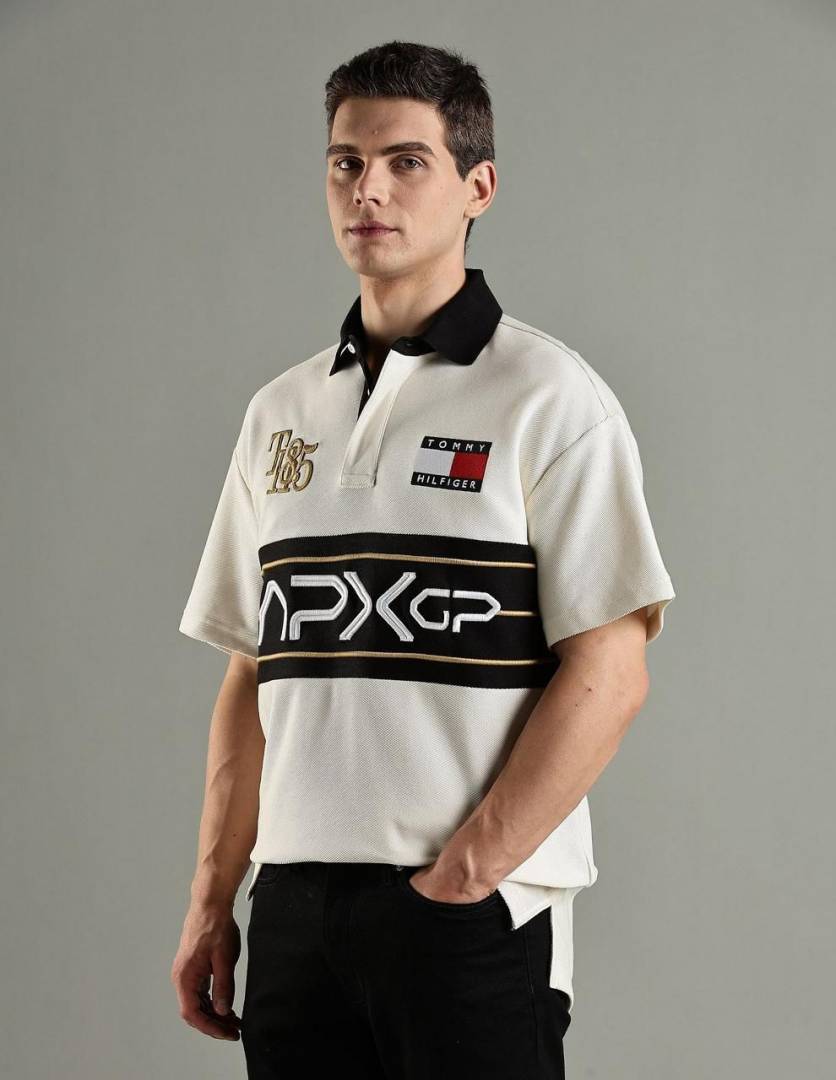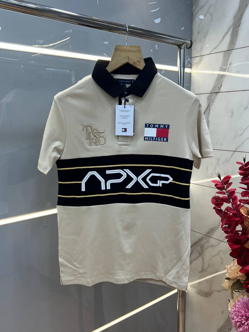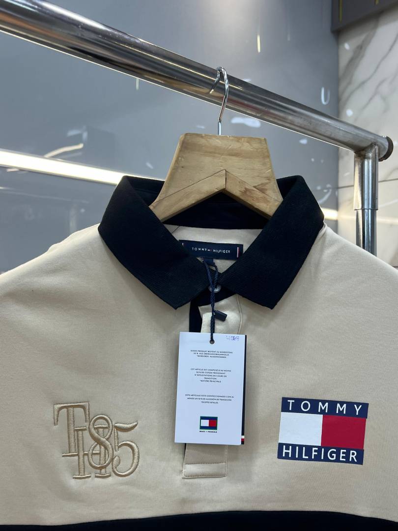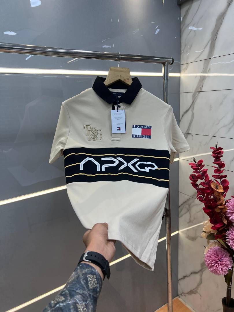 Tommy Hilfige r Sandal Premium Imported 240 GSM Interlock Lycra Fabric Polo Tshirt with Front Design and Embroidered Logo 4087