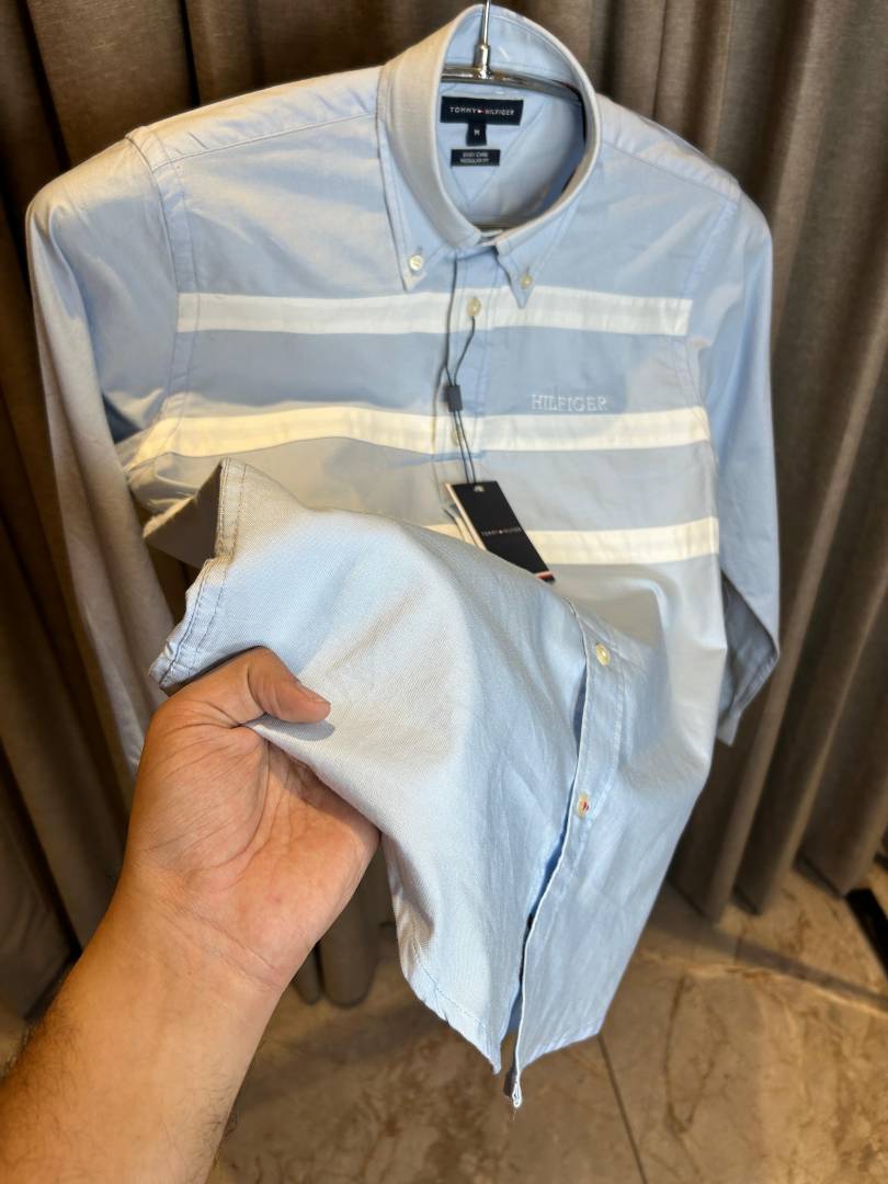 TOMMY HILFIGE_R SKY BLUE FRONT STRIPES OXFORD SHIRT