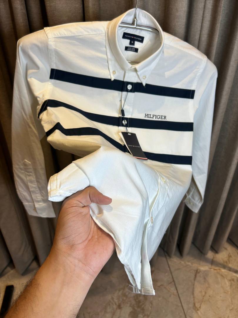 TOMMY HILFIGE_R WHITE BLACK FRONT STRIPES OXFORD SHIRT