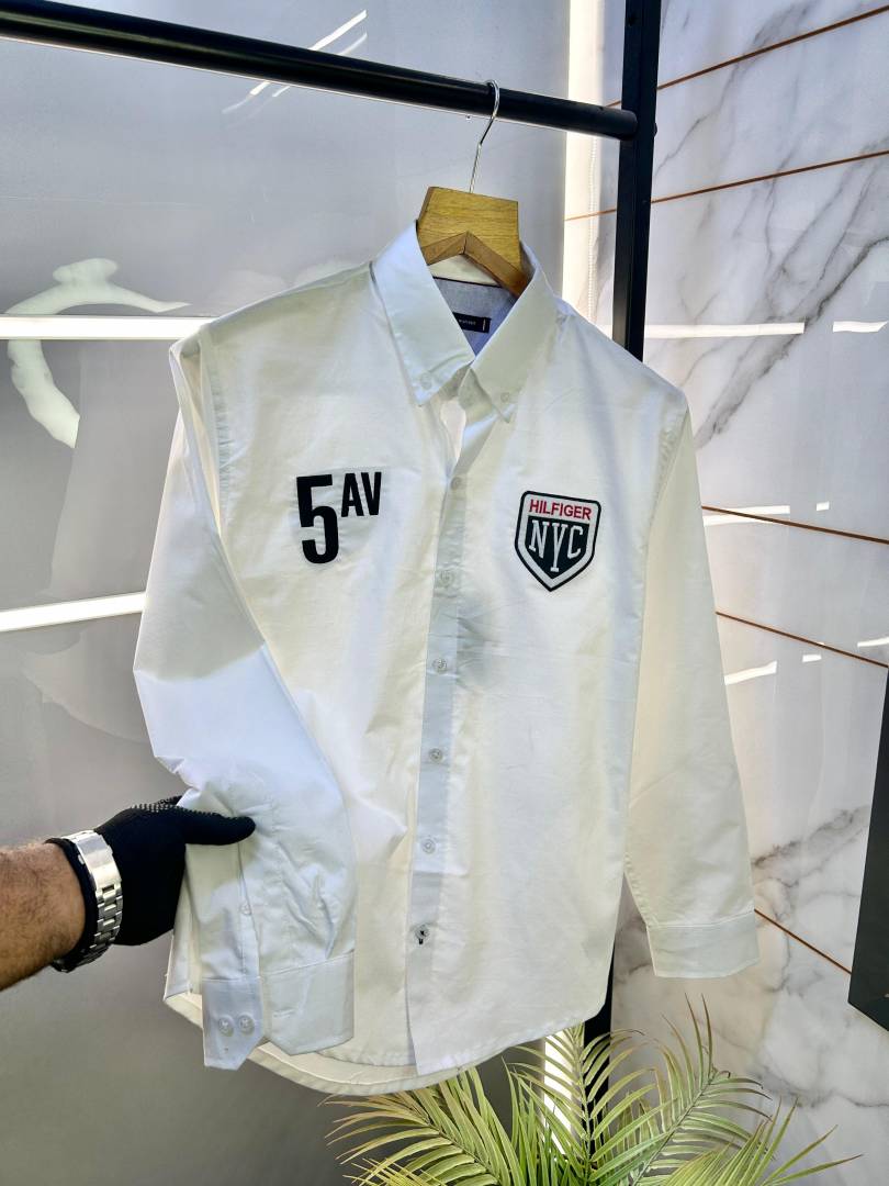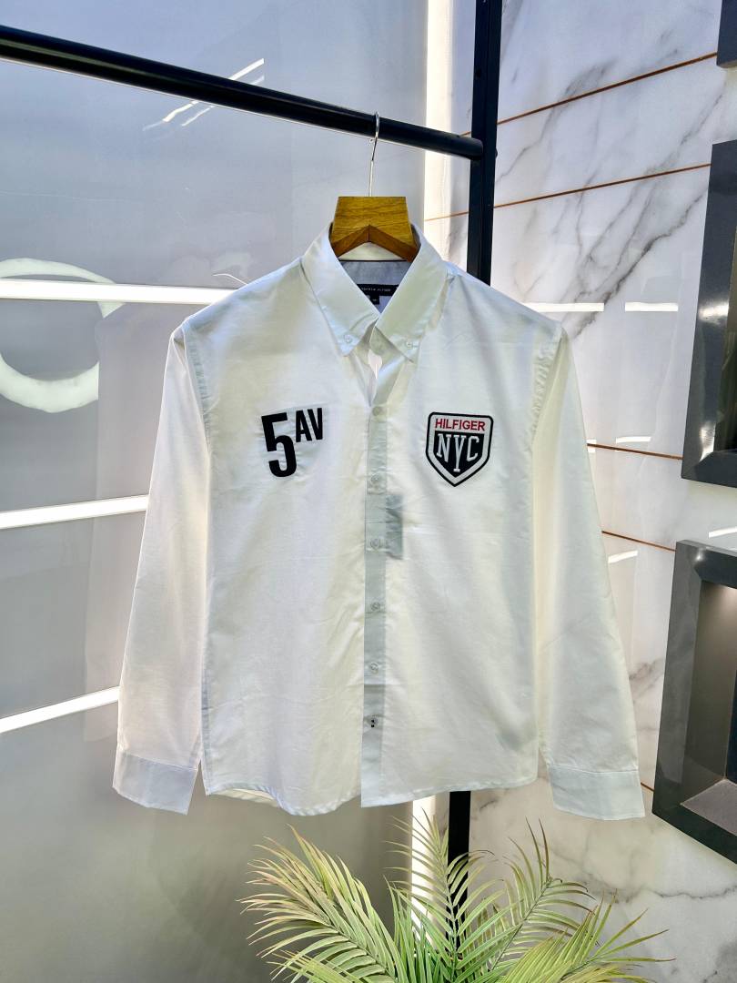Tommy_Hilfiger White Oxford Lycra Embroidery Logo Premium Shirt F2605-WH