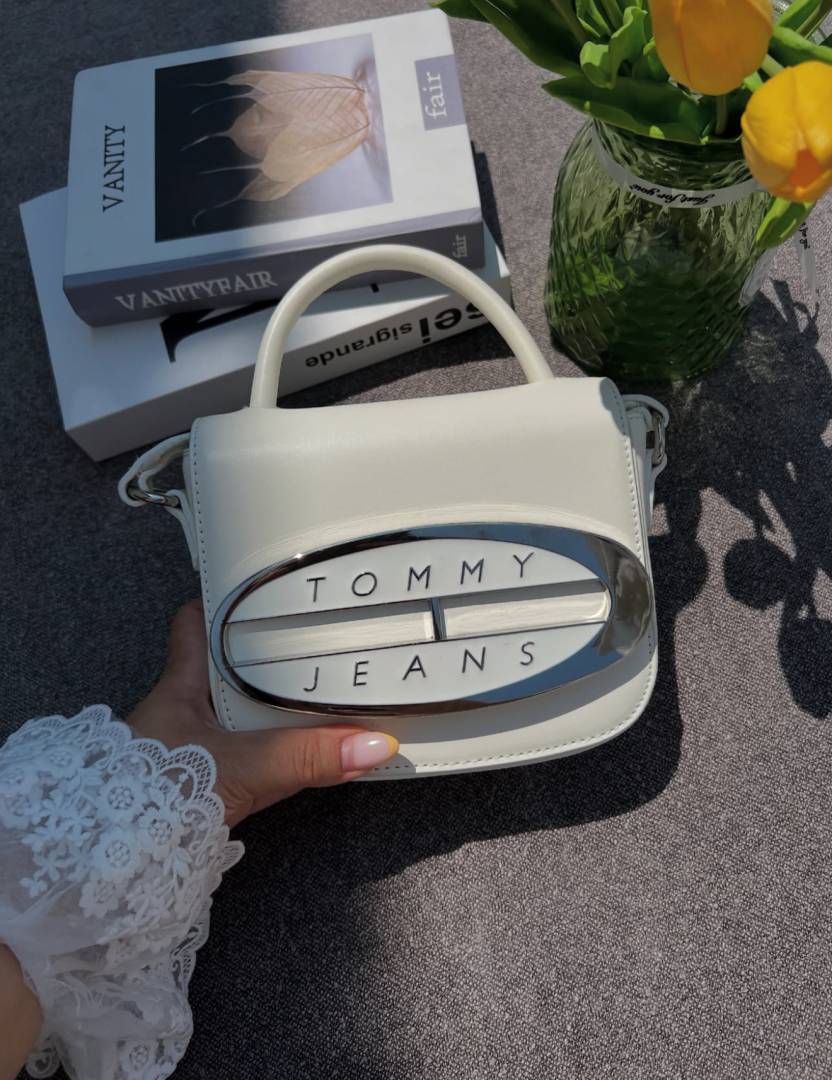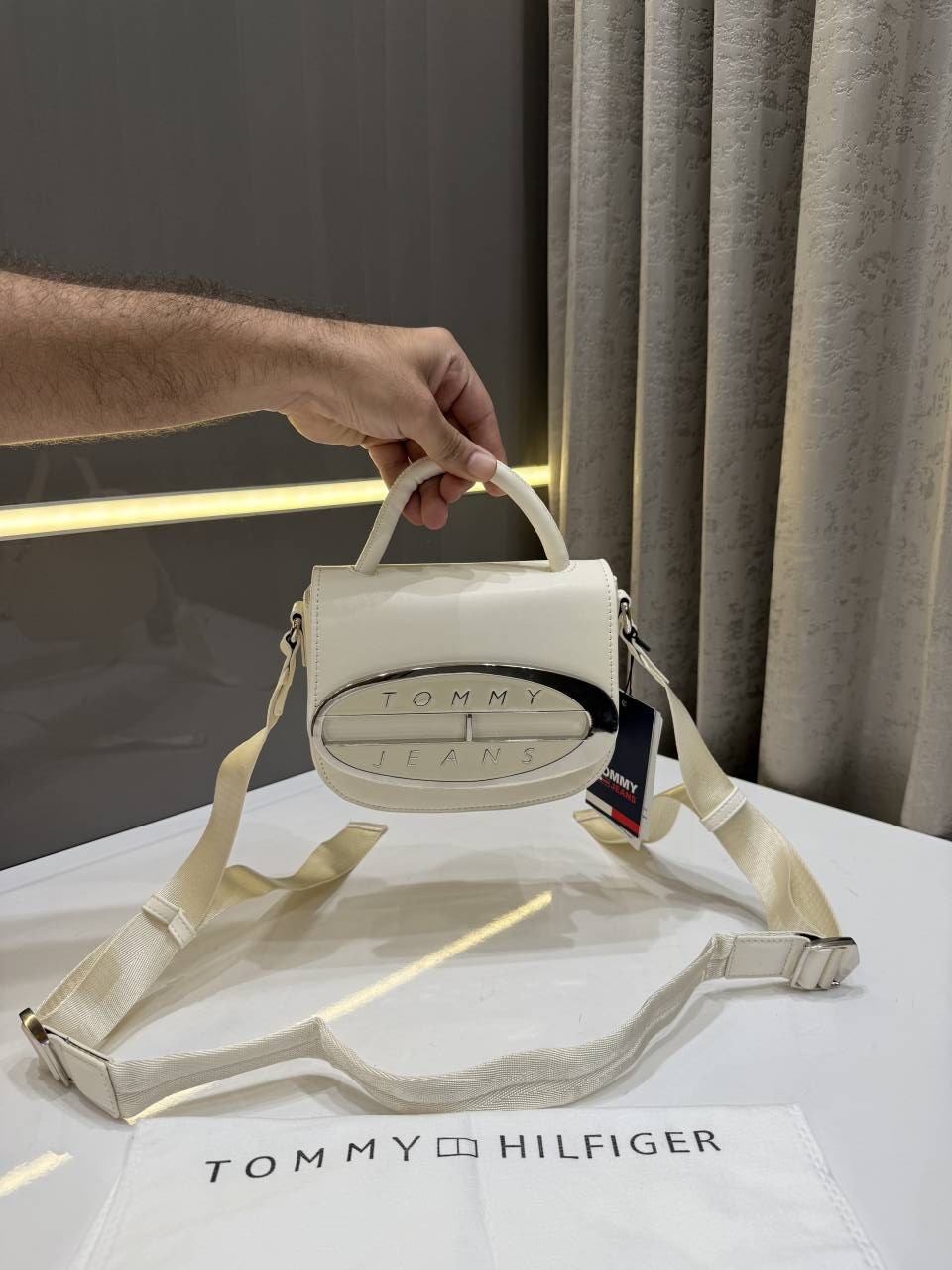 TOMMY JEANS HILFIGER WHITE PREMIUM CROSS BODY BAG WITH DIST BAG